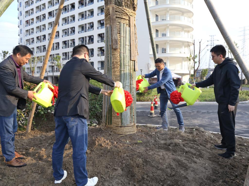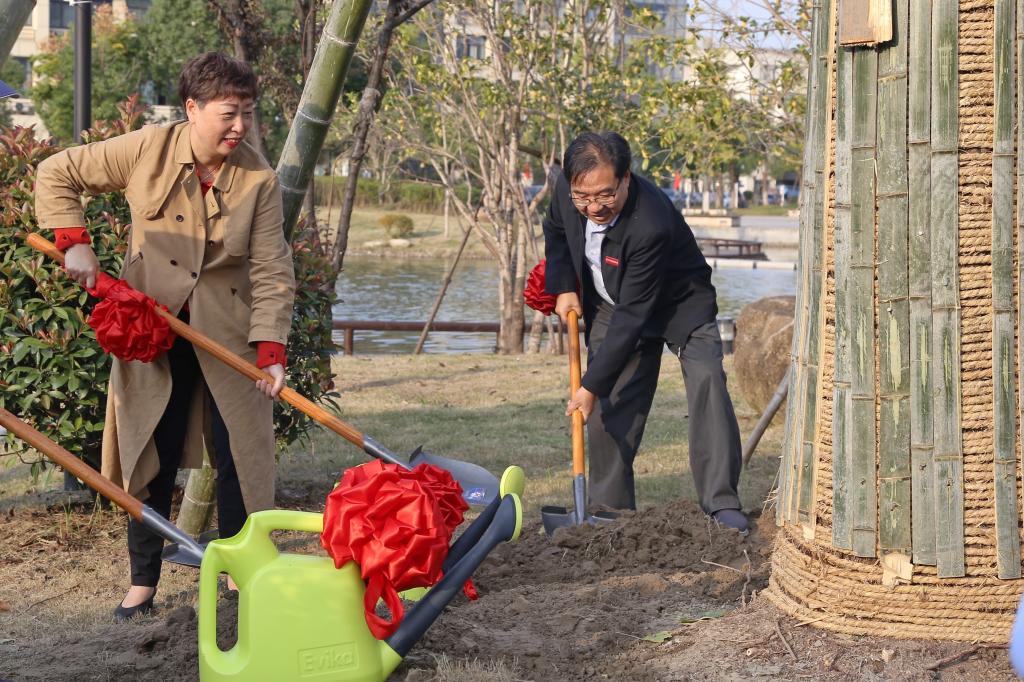 学校教育基金会理事长丁黎敏与公司副总经理方谏签订了捐赠协议,校长梁国钱向公司副总经理谢宗昂颁发了捐赠证书。最后双方领导来到银杏树下,共同为银杏树培土、浇水。