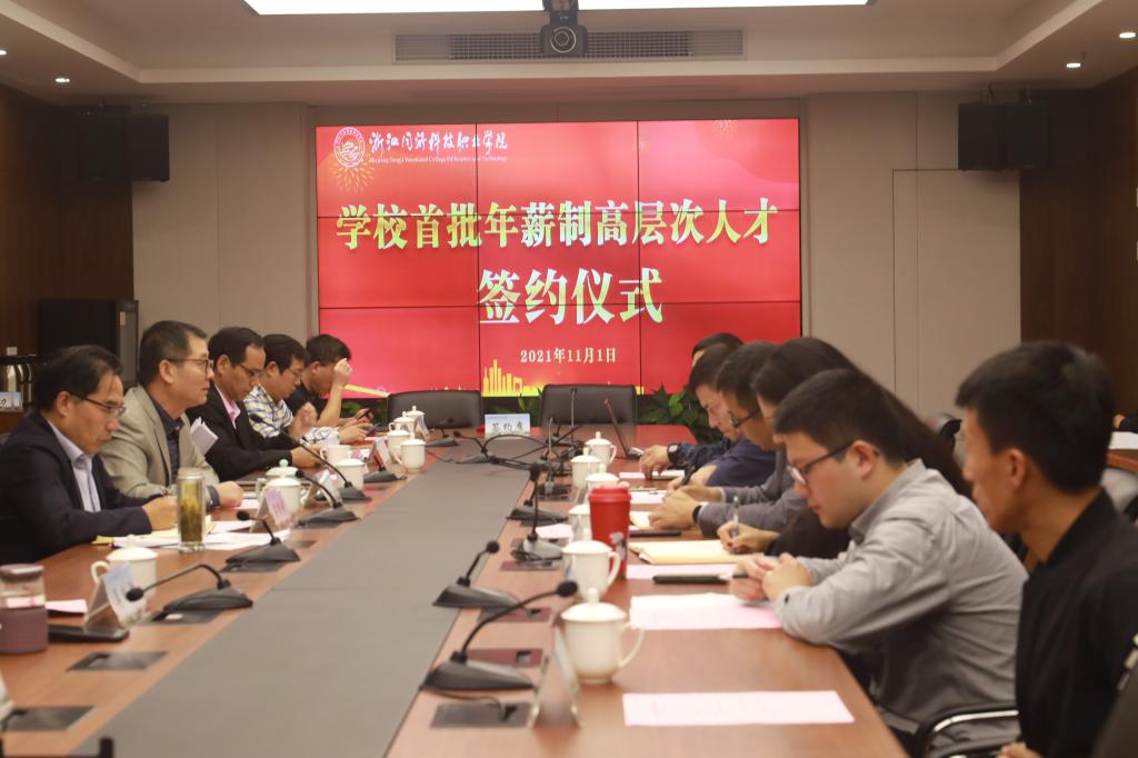 11月1日下午,学校首批年薪制高层次人才签约仪式在行政楼210会议室举行。仪式由学校党委副书记、副校长吴宏平主持,学校领导梁国钱、朱兆平、吴玲洪出席。学校首批年薪制高层次人才及人事处、科研处、教务处、年薪制高层次人才所在二级学院(部门)负责人参加仪式。