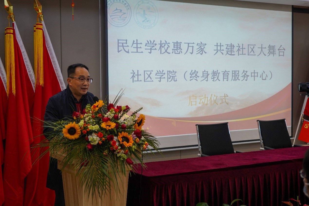 在揭牌仪式上,姜伟副校长对社区学院的成立表示祝贺,同时指出,建设社区学院是我校贯彻落实党的十九大报告和《职业教育提质培优行动计划(2020—2023年)》有关要求的一项重要举措,也是我校在省“双高”建设中的一项重要工作任务,社区学院既要办好、办实,也要宣传好、报道好。要进一步整合学校优质资源,根据居民需求开设更多课程,将社区学院办精办特。要制定好周密的工作方案,尤其是在目前疫情防控常态化的情况下更要确保安全。
