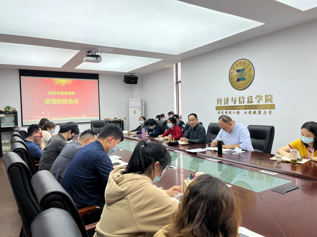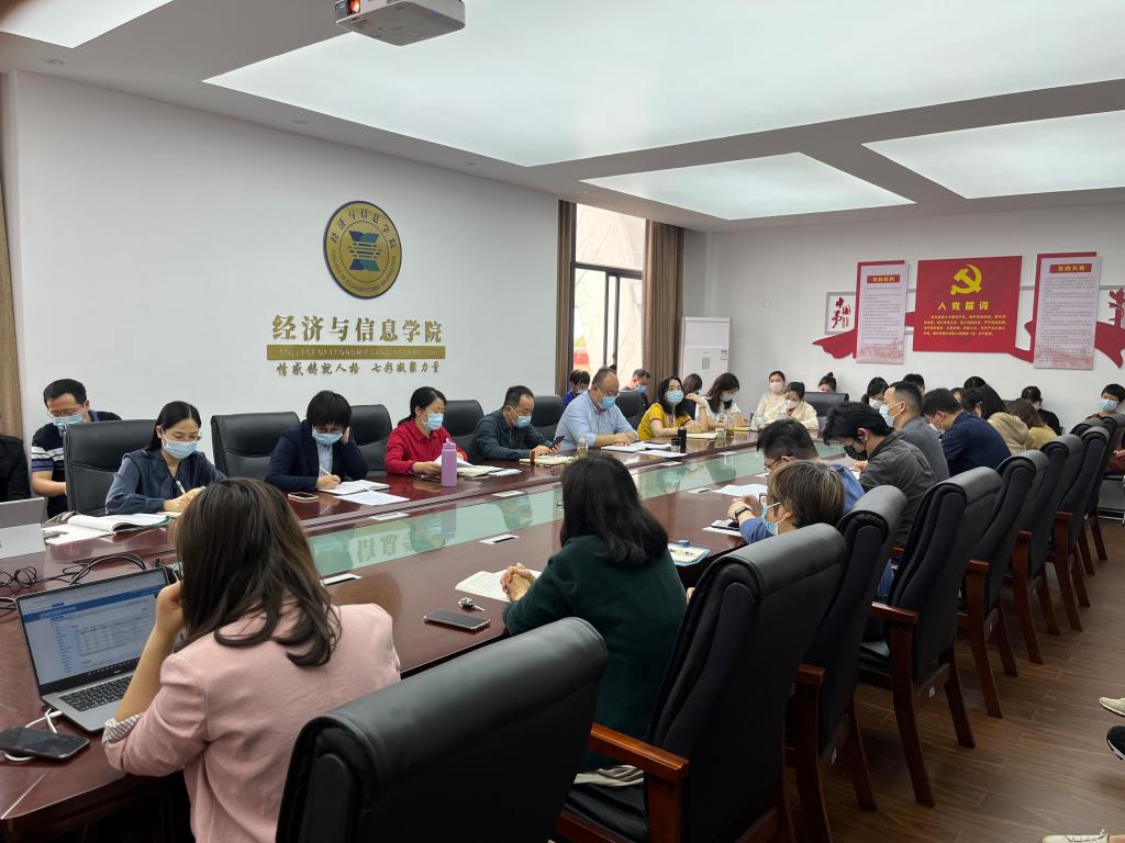 在教职工大会上,经信学院副书记王志远传达了近期相关会议精神,要求党组织充分发挥战斗堡垒作用、党员发挥好先锋模范作用,同时汇报了近期加强学生管理的具体做法。金玮佳副院长传达教学工作疫情防控相关规定,并强调在线课程的管理和实习学生的安全管理。景秀眉院长传达了近期人事处相关疫情防控要求,并强调要从严从实落实常态化疫情防控措施。