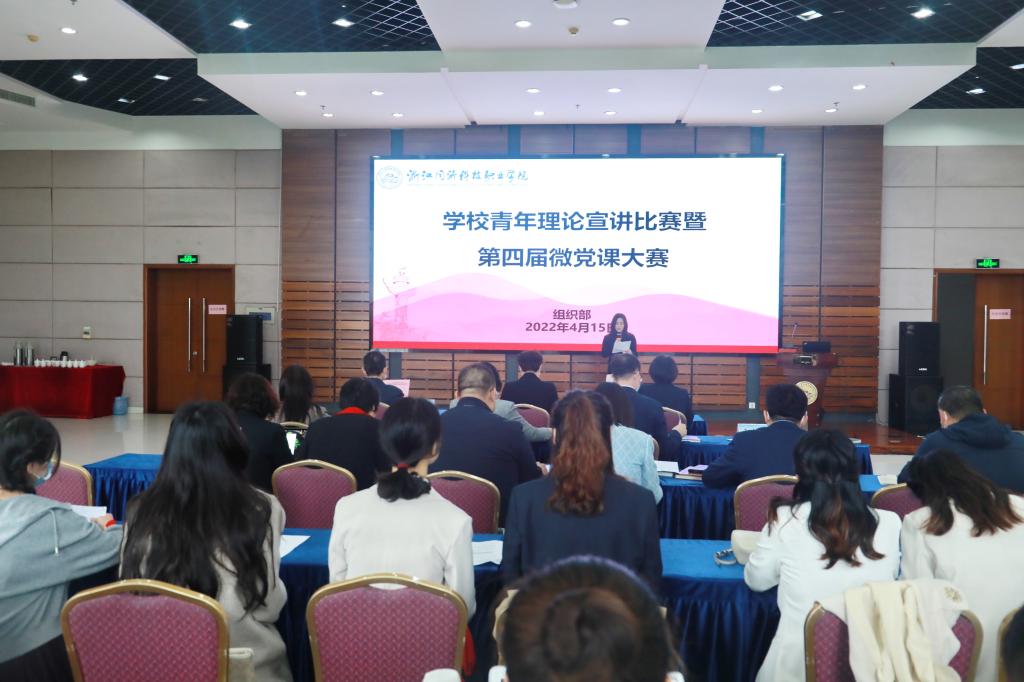 4月15日,学校举行了青年理论宣讲比赛暨第四届微党课大赛。学校党委书记江影,党委副书记、副校长吴宏平,党委委员、纪委书记应芬,党委委员、组织部(人才办)部长(主任)吴玲洪,党委委员、宣传统战部部长吴敏启出席比赛,各二级党组织书记、全体组织员、学生代表到场观摩。