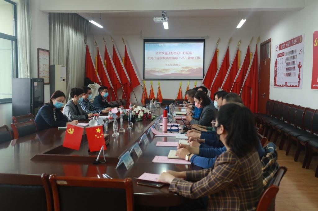 江影书记听取了机电工程学院院长金永琪就学院全面推进“7S”管理工作情况的汇报后,对机电学院积极探索“7S”管理的具体实践及成效给予了肯定。江影书记指出,机电学院“7S”管理活动思路清晰、体系完整、分层分类,已见成效,经验值得推广。她要求机电工程学院进一步统一思想,促进“7S”管理活动和文明校园创建的深度融合,继续做好优化完善、特色凝练、典型示范、经验推广等工作,为学校解决实训管理短板、拓展高职生职业素养教育阵地等问题提供优秀样本,推动学校“三全育人”水平再上新的台阶。