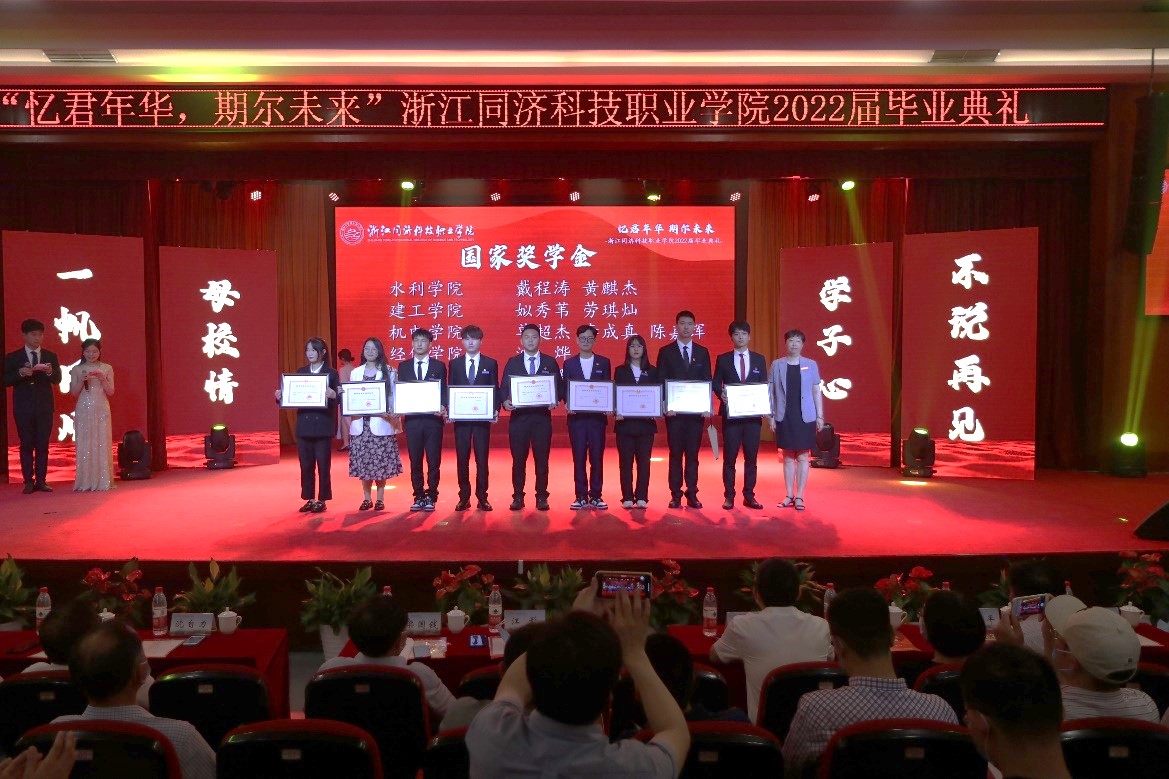 典礼上公布了国家奖学金、省级优秀毕业生、省政府奖学金获得者名单。校领导分别为获奖者、毕业班班长颁发荣誉证书和毕业证书并合影留念。