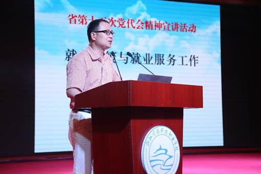 为全面学习贯彻浙江省第十五次党代会精神,6月28日下午,省直机关工委机关青年巡回宣讲团和学校党委宣传部联合主办、“钱江潮”理论宣讲工作室承办的省第十五次党代会精神专题宣讲活动在我校水韵剧场举行。省直机关工委宣教部部长周招满、省水利厅直属机关党委副书记王新辉、机关青年巡回宣讲团成员、学校领导班子成员、副处级及以上干部、青年教职工代表及学生代表参加活动。