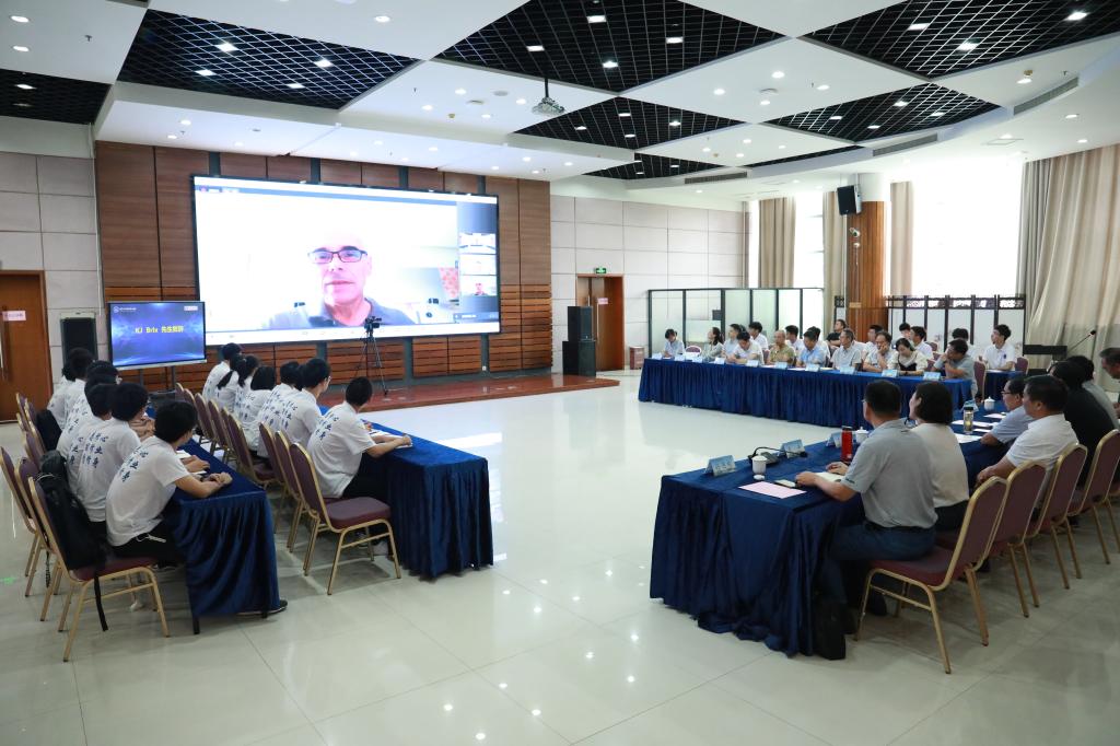 2022年9月27日上午,我校教育部中德先进职业教育合作项目(SGAVE)试点班开班仪式在学校行政楼三楼多功能报告厅举行。教育部中德先进职业教育合作项目高级顾问KJ Brix,德马吉森精机培训学院中国教育行业总监孙立通过网络出席仪式,校长梁国钱、副校长朱兆平出席现场仪式。教务处、学工部、机电工程学院相关负责人及教师,试点班全体学生参加开班仪式。