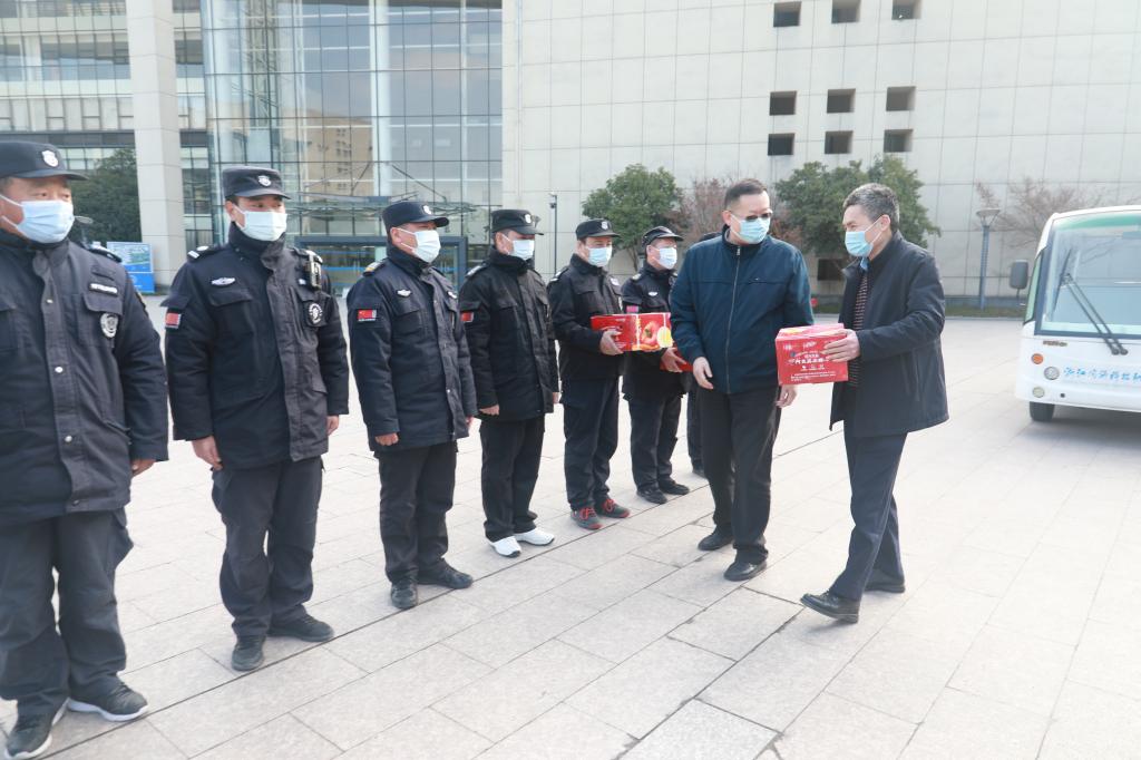 1月10日下午,学校党委书记张勇、校长王卫标,校领导姜伟、朱兆平、吴敏启等深入一线看望并慰问坚守工作岗位的安保及后勤保障人员,感谢工作人员的辛苦付出,祝福大家新年吉祥、阖家欢乐。