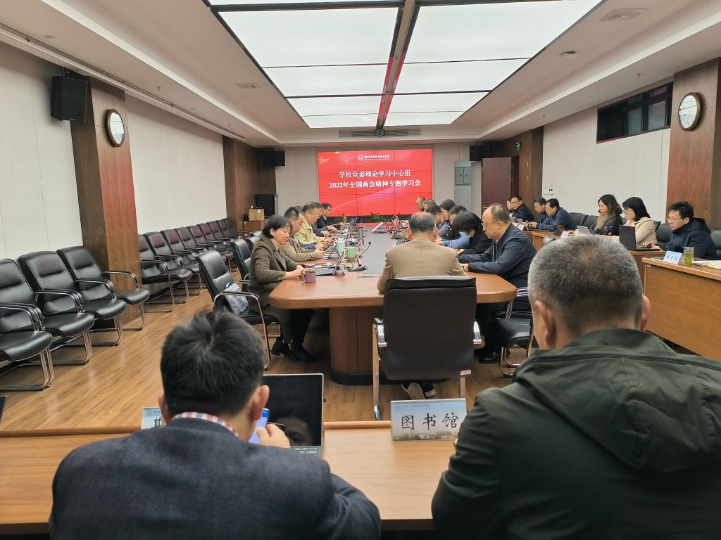 3月23日,学校党委召开2023年第四次理论学习中心组学习会,专题学习全国两会精神。党委书记张勇主持会议,学校领导班子成员、各部门及二级学院党政主要负责人参加会议。