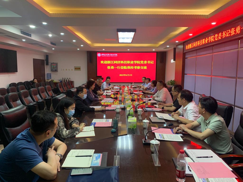 在黄河水利职业技术学院调研期间,张勇书记一行参观了环境工程学院、现代测绘育训中心、产业学院、水利水电实训基地、杰出校友纪念馆等场所,并与黄河水利职业技术学院党委书记周保平及相关部门负责人开展座谈。座谈会上,周保平书记详细介绍了学校历史、办学特色、党建思政和人才培养模式等情况。张勇书记表示,黄河水利职业技术学院办学历史悠久、底蕴深厚,是黄河技干摇篮和水利人才的黄埔军校,更是水利职教的排头兵,我们要向黄河水利职业技术学院学习先进办学经验,借鉴先进办学理念,希望今后黄河水利职业技术学院在党建统领、产教科融合、校企合作、工学交替、大学生创新创业等方面给予指导帮助,也希望今后两校继续加强交流合作,互促互进。