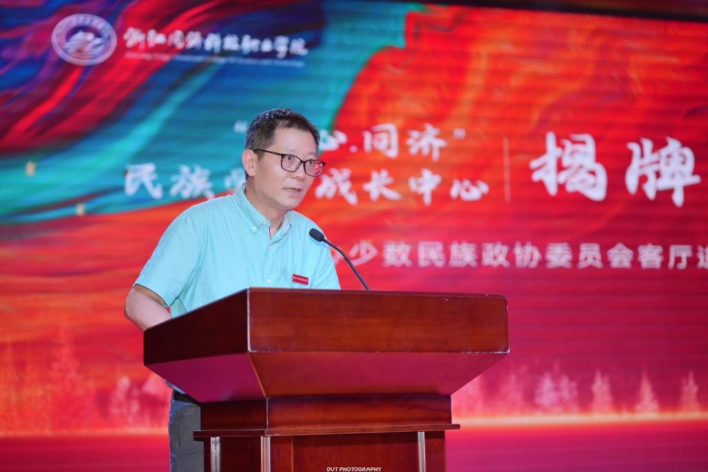 为进一步加强学校民族学生教育管理工作、推动各民族学生的交往交流交融,学校于6月14日在瓯江楼水韵剧场开展“同心﹒同济”民族学生成长中心揭牌仪式暨杭州同心少数民族政协委员会客厅进校园活动。学校党委副书记、副校长吴宏平出席本次活动。杭州市民宗局民族处副处长余洁,政协提案委专委会专职副主任周方,拱墅区政协副主席周钢,拱墅区统战部常务副部长、民宗局局长哈军礼等领导莅临现场。参加活动的还有拱墅区东新街道领导、政协委员代表、学校各相关部门和二级学院党总支负责人等。