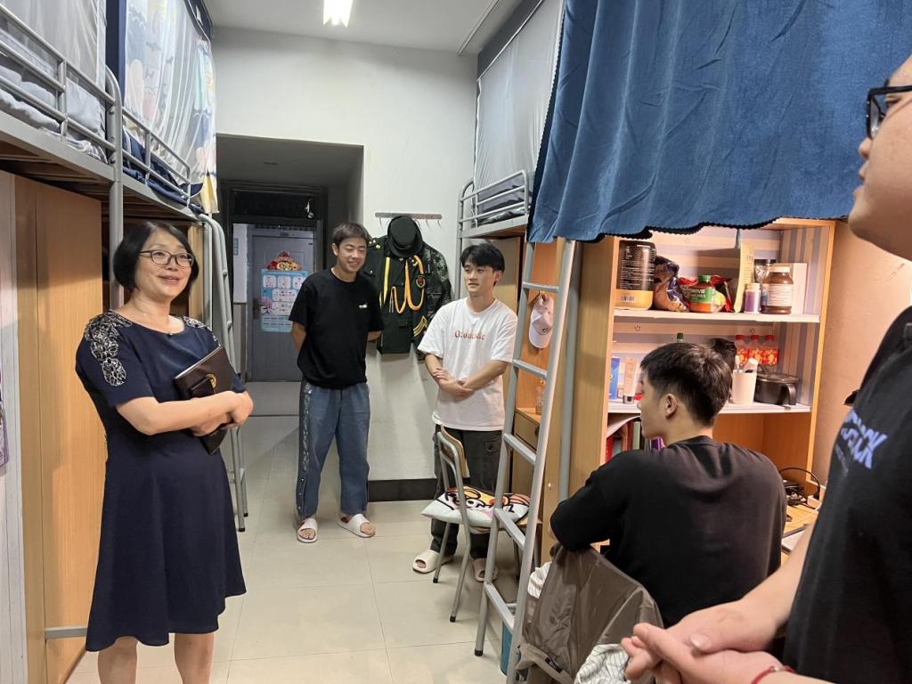 会后,为进一步落实“一岗六联”工作,应芬书记到学生寝室开展主题教育调研,了解学生学习和生活状况,摸排学生急难愁盼问题。她亲切地询问了同学们的学习计划及生活状态,并详细回答了同学们提出的问题。应芬书记还与同学们分享了自己在大学期间的故事,希望同学们珍惜大学生活,不留遗憾。