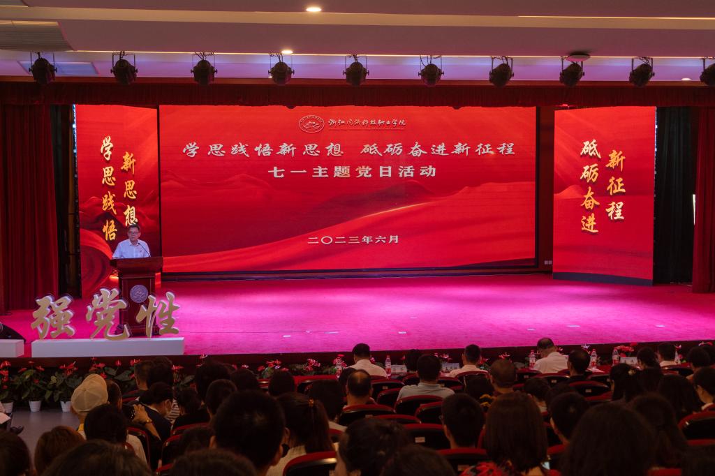 为庆祝中国共产党成立102周年,深入开展学习贯彻习近平新时代中国特色社会主义思想主题教育,激励广大党员奋进新征程、建功新时代,6月28日下午,我校在瓯江楼水韵剧场举行“学思践悟新思想 砥砺奋进新征程”七一主题党日。全体校领导和师生党员到场参加,活动由党委副书记、副校长吴宏平主持。