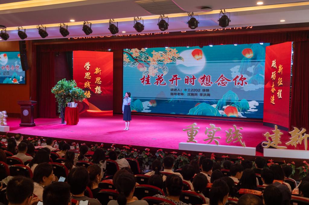 随后,水工22-02班徐妍同学展示了全省高校思政微课大赛特等奖作品《桂花开时想念你》;浙江省水利厅“‘八八战略’在身边”宣讲大赛一等奖获得者田雅雯老师讲授微党课《假如河流有记忆》。他们声情并茂的讲述、慷慨激昂的风采深深感染了现场的党员,引起大家强烈的共鸣,获得阵阵掌声。