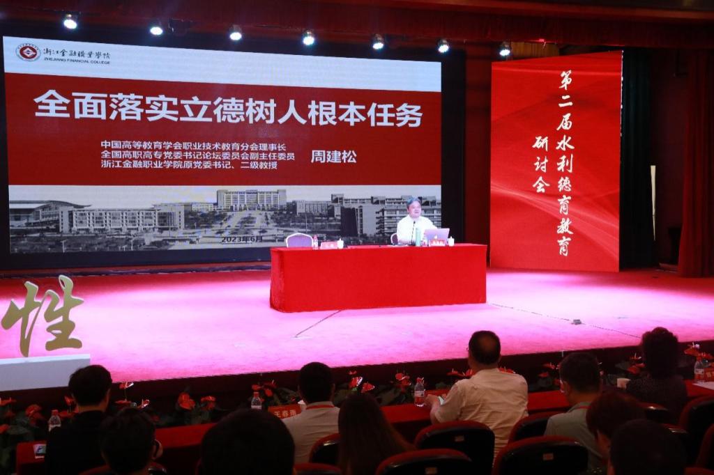 开幕式后,中国高等教育学会职教分会理事长周建松以“全面落实立德树人根本任务”为主旨作专题报告。会前,专家组评议了第三届水利德育教育优秀成果,共有51所院校提交了80项典型案例。