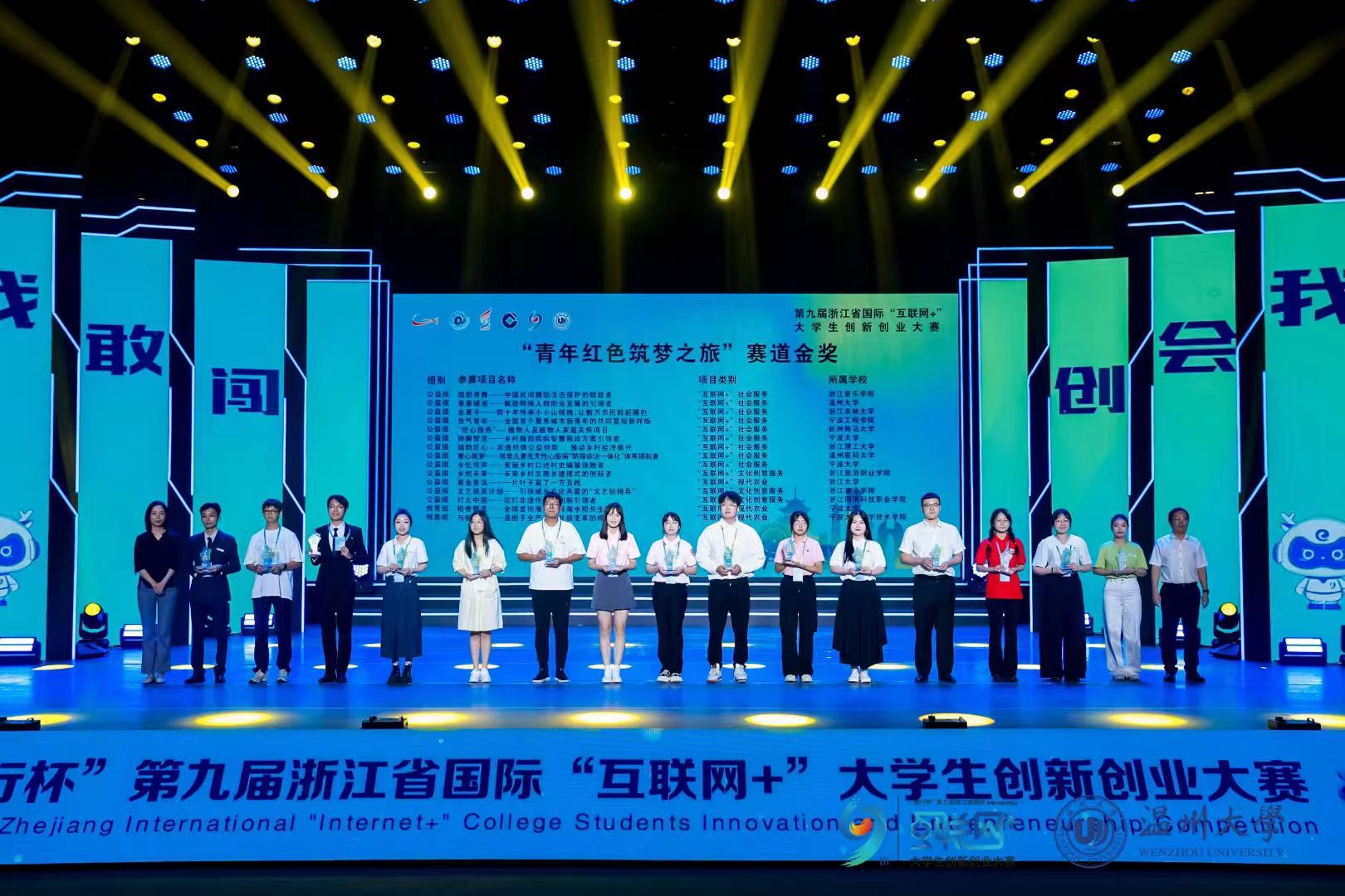 7月21至23日,“建行杯”第九届浙江省国际“互联网+”大学生创新创业大赛决赛在温州大学落下帷幕。本届大赛主体赛事分为高教主赛道、“青年红色筑梦之旅”赛道、职教赛道等,全省共有114所学校、5.09万个项目、40万人次报名参赛。经过激烈角逐,最终产生73个高教主赛道金奖项目、30个“青年红色筑梦之旅”赛道金奖项目、35个职教赛道金奖项目。我校《灯火中国》等6个项目在省决赛中斩获金奖1项、银奖4项、铜奖1项,并连续四年荣获大赛优秀组织奖。