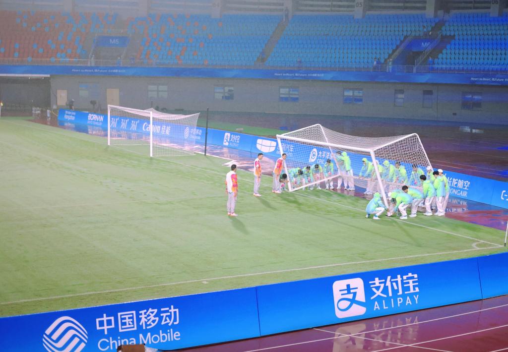 9月21日下午,印度对孟加拉国的足球比赛中突降大雨,我校“小青荷”身披雨衣,奔忙在场地布置、礼宾接待、交通引导、信息服务等各个领域,抬球门、清场地、出队旗……以追求极致的工作细节彰显志愿服务的温度。沈琛是该场足球赛的“球童”,大雨滂沱中,她依然全神贯注地紧盯球场,任由雨水与汗水交织,顺着昂起的额头流下,却依然坚如磐石驻守岗位,时刻准备着做好抛球、捡球等服务工作。“很感恩有这样一个机会,‘小青荷’的身份让我感到自豪,数次听讲、百次练习,使我们每一位志愿者在点位上都能独当一面,团队协作、并肩作战,也让我们收获了深厚的友谊,这都将是我人生中宝贵的经历。”沈琛的眼神坚定而清澈。