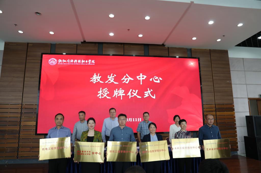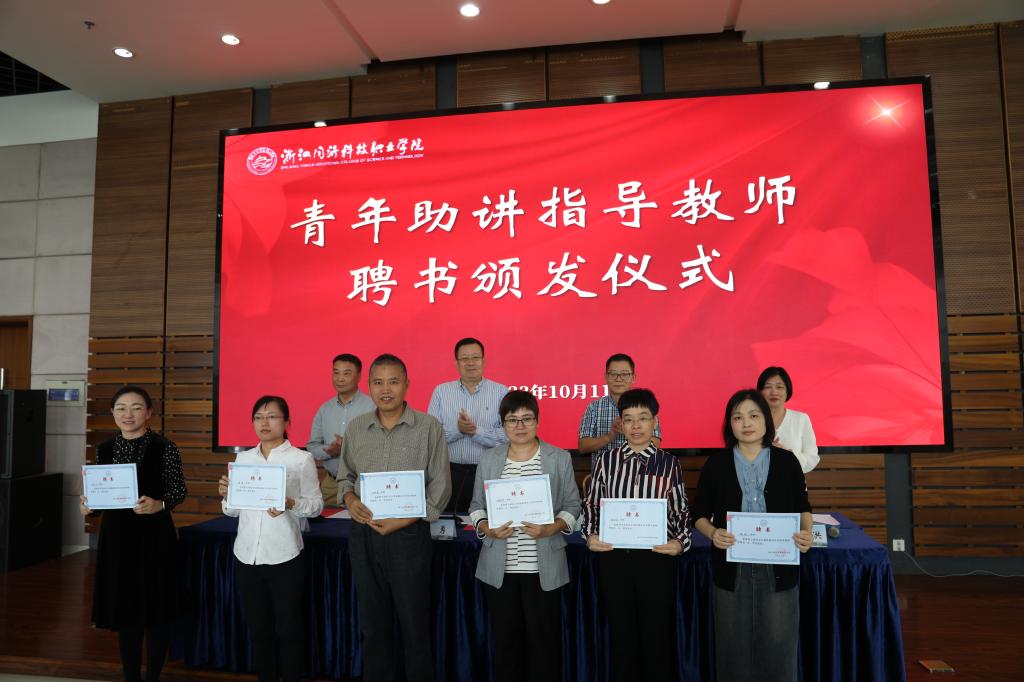 吴宏平副书记带领全体新进教师庄严宣誓。铿锵有力的宣誓誓言,响彻整个会场。新进教师们在师德承诺书上签下名字,并作出郑重承诺。校领导分别为各二级学院教发分中心授牌,为助教培养指导教师代表颁发了聘书。