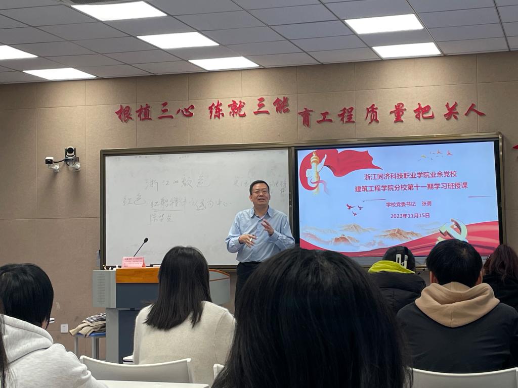 “浙江是中国革命红船起航地、改革开放先行地、习近平新时代中国特色社会主义思想重要萌发地,所以浙江的底色就是红色!”11月15日下午,学校党委书记张勇以“浙江的颜色”为题为建工学院第十一期业余党校学员授课,引导学生深入学习习近平新时代中国特色社会主义思想,深刻领悟“八八战略”丰富内涵和时代价值,感受“八八战略”实施20年来,浙江发生的精彩蝶变。