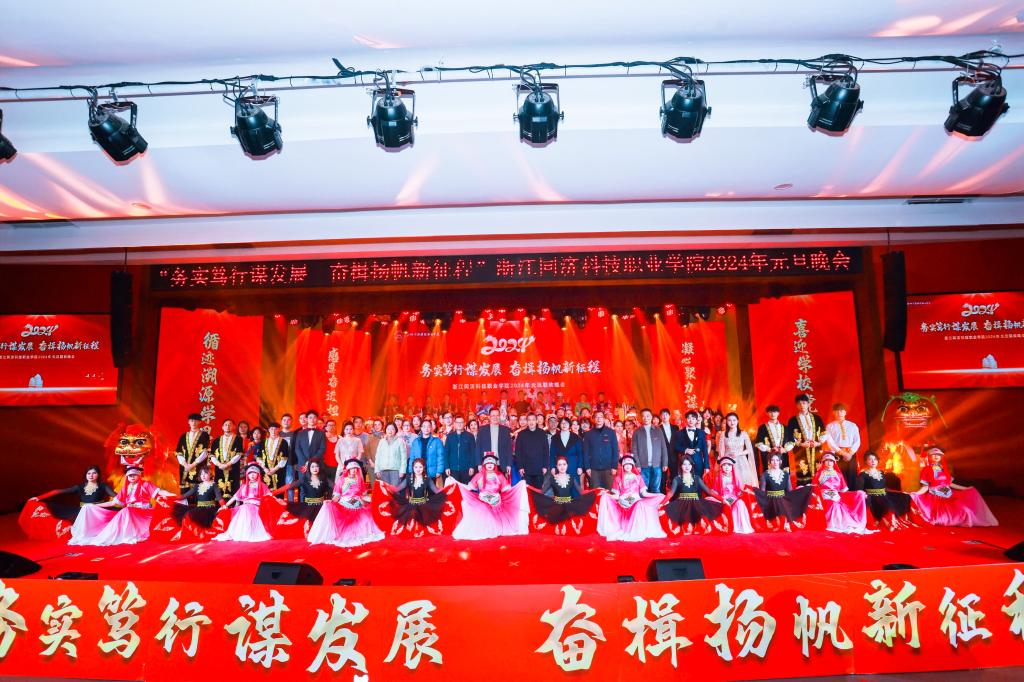 兔辞玉乾坤,龙腾花世界。12月28日晚,学校“务实笃行谋发展 奋楫扬帆新征程”2024年元旦晚会在学院水韵剧场举行。全体校领导、中层干部、教师代表、学生代表欢聚一堂,喜迎新年。