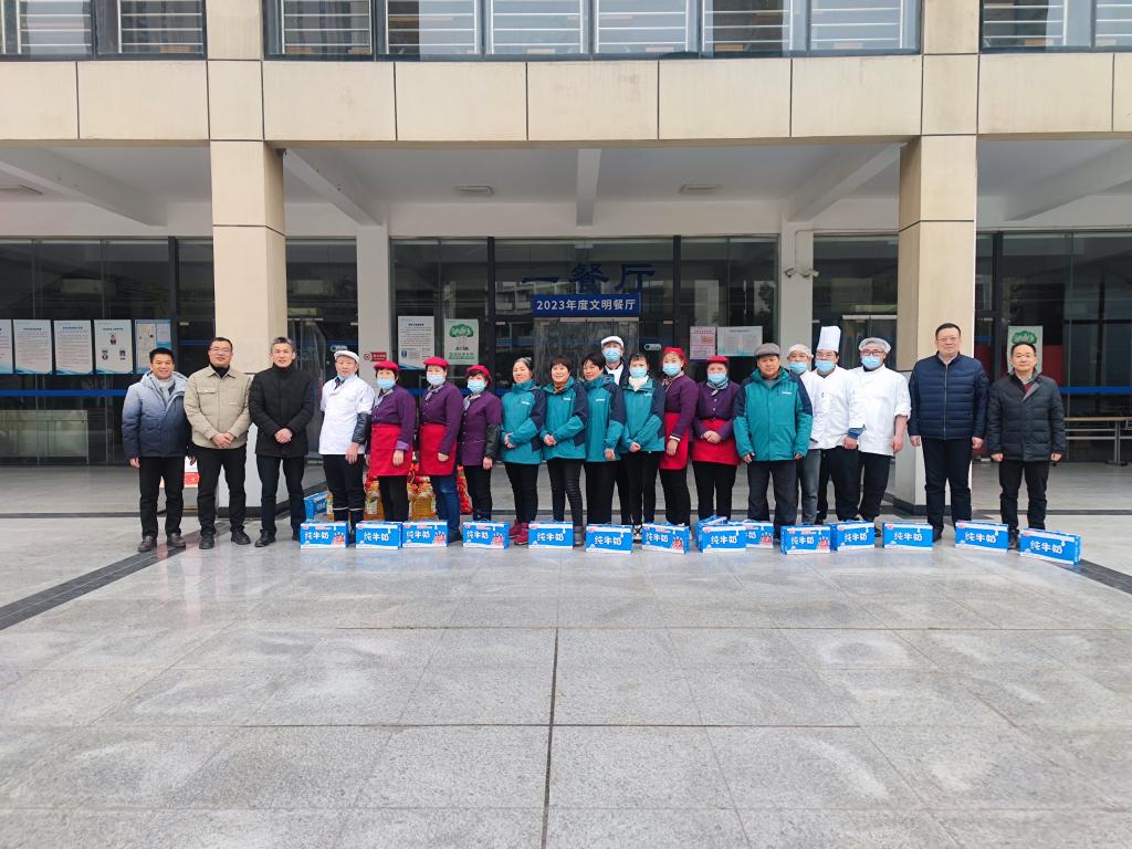 1月29日下午,学校领导张勇、王卫标、姜伟、吴敏启带队,后勤处、保卫处等相关部门负责人及工作人员组成安全检查组,开展春节前校园安全大检查,并深入一线慰问坚守工作岗位的安保及后勤保障人员。