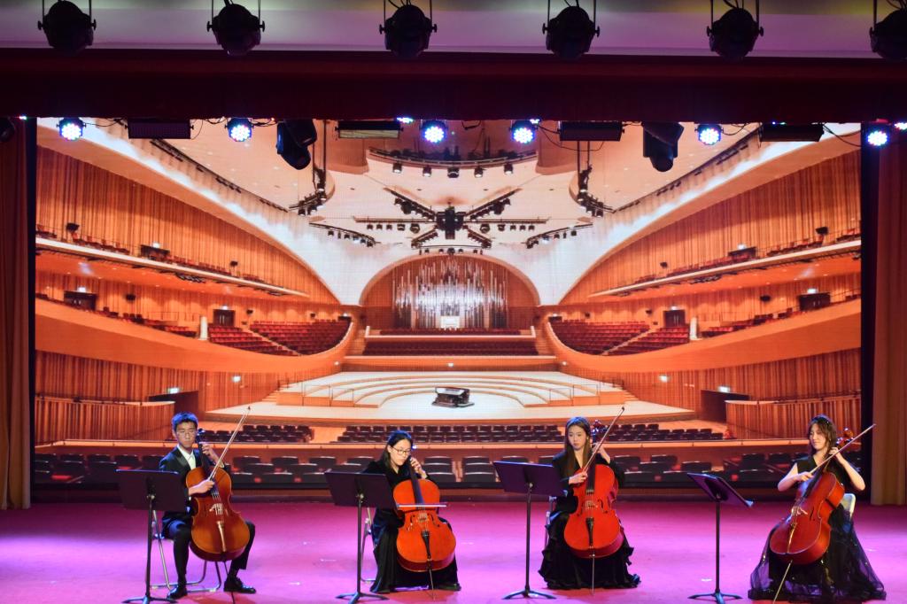 演出在一首女低中高三重唱《在希望的田野上》中拉开帷幕,欢快的歌声深入人心。充满民族特色的扬琴与古筝《瑶族舞曲》、优雅华丽的弦乐四重奏《肖斯塔科维奇第二圆舞曲》、神秘朦胧的舞蹈《天浴》、武侠风格的古筝重奏与钢琴《卧虎藏龙》、婀娜多姿的独舞《爱莲说》等,都引得在场学生热情鼓掌。演出在歌伴舞《百年初心》的高昂歌声中落幕。此次演出,通过再现经典音乐作品、原创舞蹈的形式,多角度、全方位呈现出了一场美轮美奂的艺术盛宴,充分感受了艺术所带来的情感和力量。