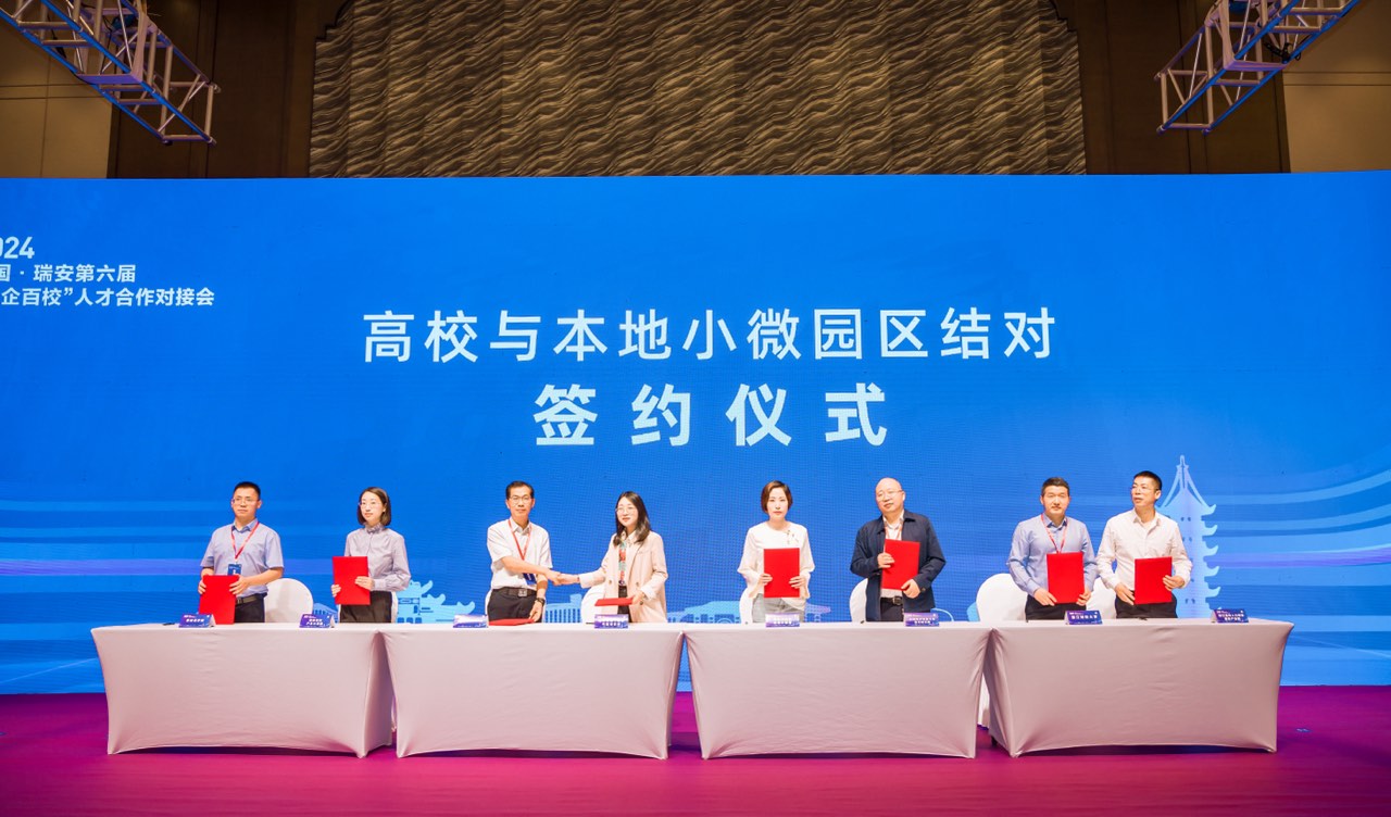 本次对接会在浙江温州人力资源服务产业园举办,来自全国各地100多所高校和700余家本地企业齐聚,为大学生高质量就业保驾护航。在开幕式上,学校与瑞安市塘下场桥汽配园签订小微园合作意向书。在供需对接会上,学校精心准备了关于办学情况、专业介绍、毕业生情况等宣传材料,并与圣井电力等多家企业就校园招聘事宜进行洽谈,企业表达了进一步加强联系、到校选聘人才的期望。