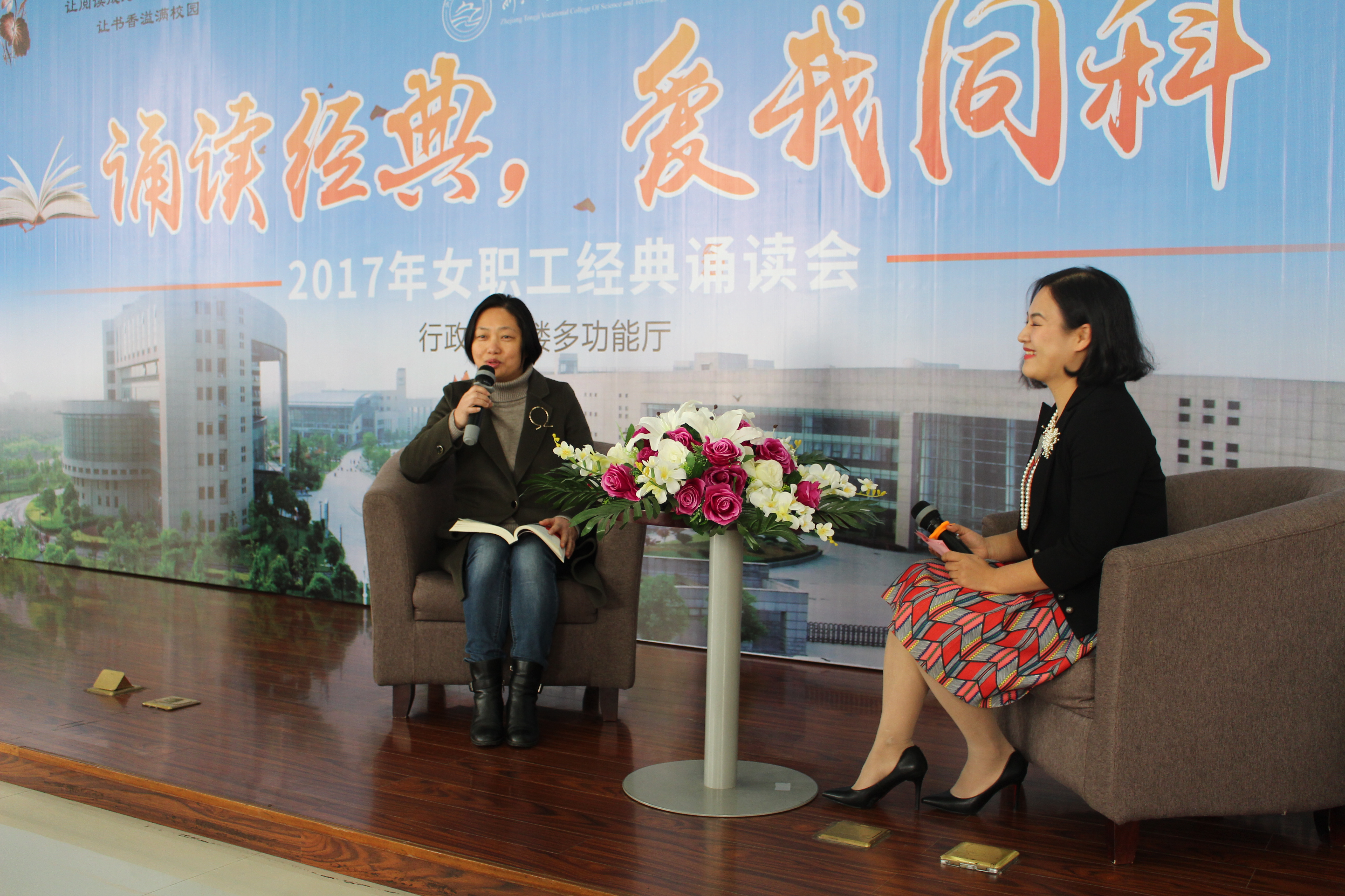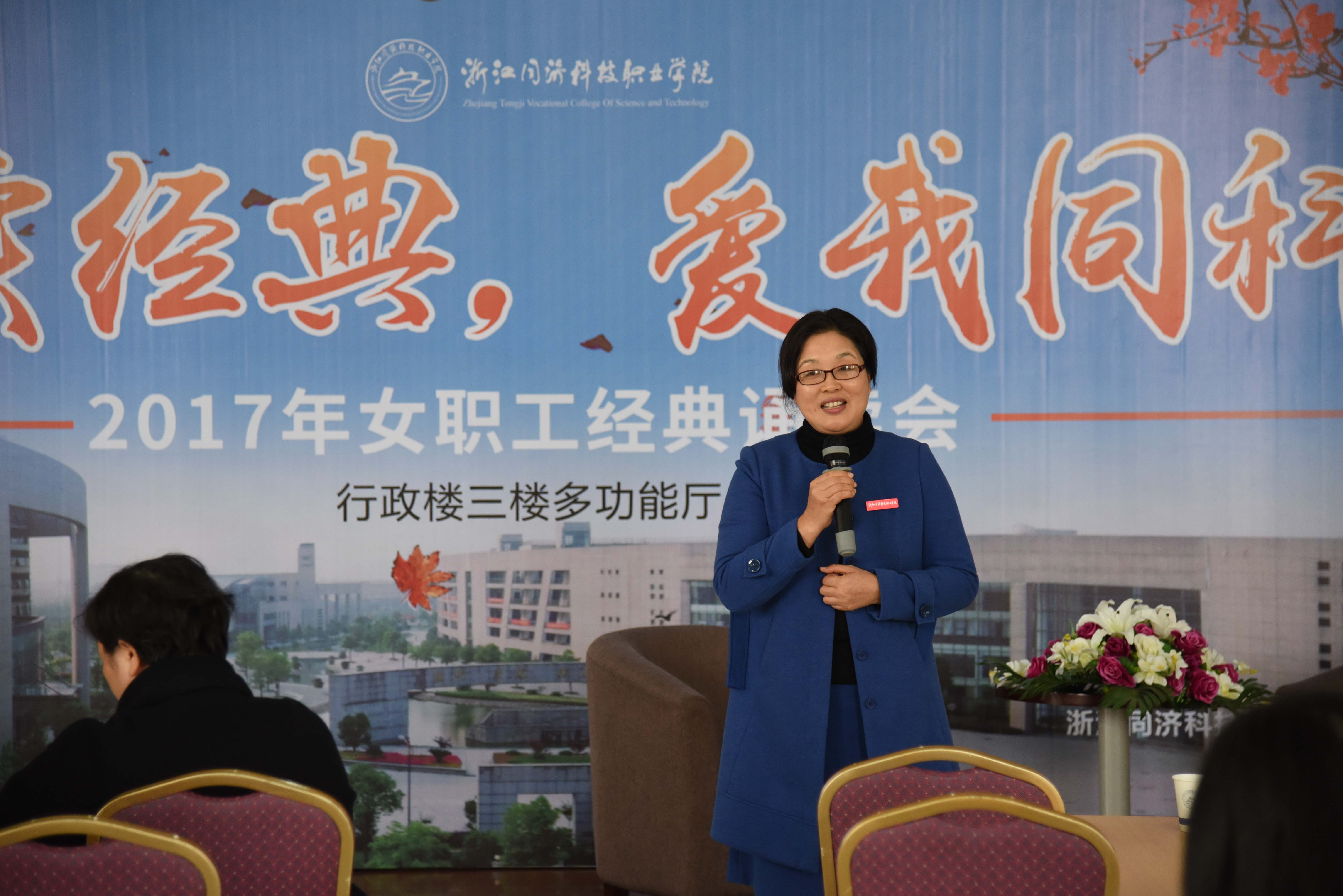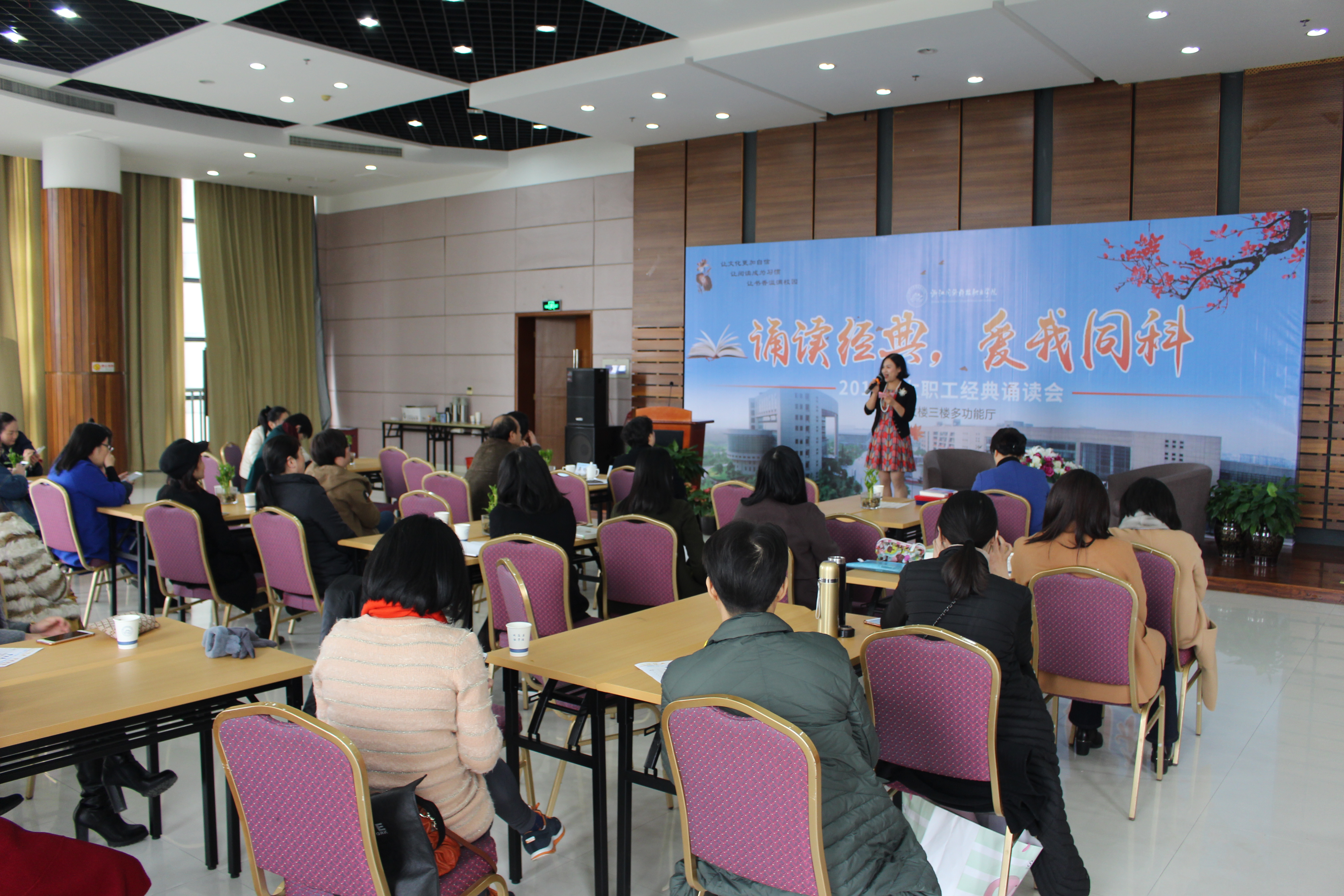让文化更加自信,让阅读成为习惯,让书香溢满校园。12月6日下午,在行政楼三楼多功能厅,学院工会女工委举办了“诵读经典,爱我同科”女工经典诵读会。学院党委书记江影、党委委员吴玲洪、工会主席陈玉阳等领导,各分工会、工会小组代表五十多名女教职员工参加了诵读会,诵读会由女工委委员许小青、章卉老师一同主持。