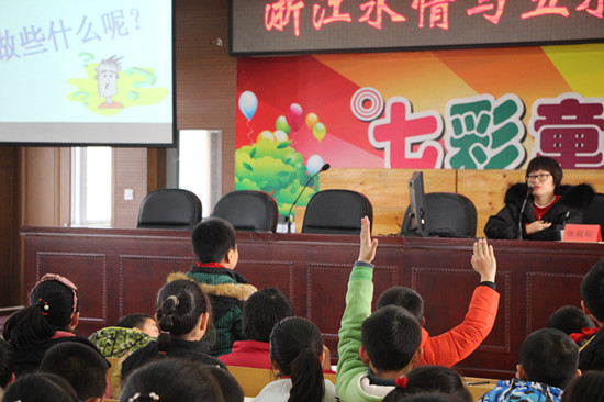 本次讲座受到了衙前农小广大师生的广泛支持与热烈欢迎。中午12时整,主题宣讲正式开始。张老师的宣讲围绕浙江水资源时空分布不均、人均水资源缺乏、如何分类劣五类水以及如何从身边的小事做起来保护水资源等四个方面展开,普及了相关知识,丰富了衙前农村小学的同学们的第二课堂。在讲座过程中,张老师与小朋友们现场互动频繁,对于回答问题的同学有精美礼品送上。讲座现场气氛热烈,小朋友们积极举手发言,表达自己在这次讲座中的所学所获和关于保护水资源的建议。别看他们年龄虽小,心里也充满了对剿灭劣五类水的见解,纷纷表示愿意加入到V类水的行列中来!