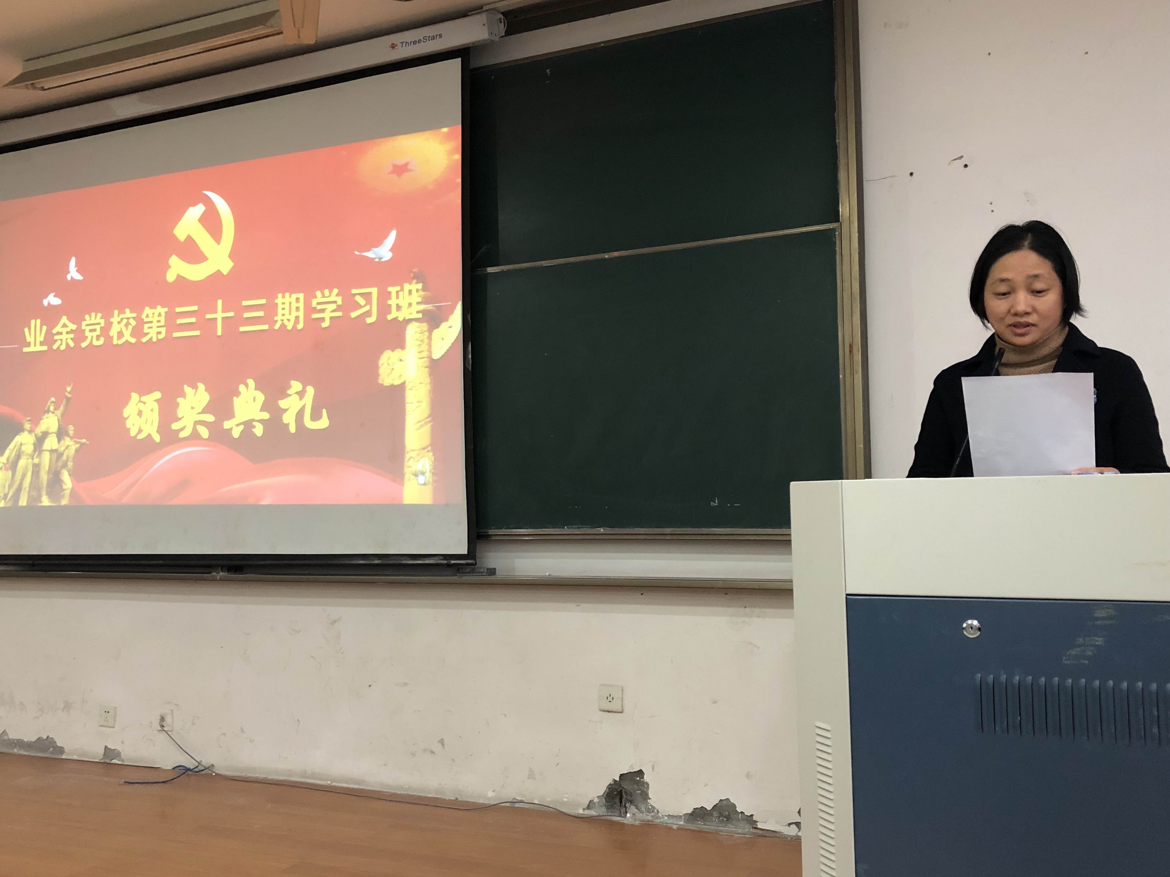 12月20日下午,我院业余党校第33期学习班结业典礼在水利机电楼A101教室隆重举行。院党委委员、副院长吴宏平,院党委委员、组宣部部长吴玲洪出席结业典礼。到场的还有学工部负责老师,各系党总支书记、各系党建辅导员及33期学习班全体学员。结业典礼由学工部副部长叶乐主持。