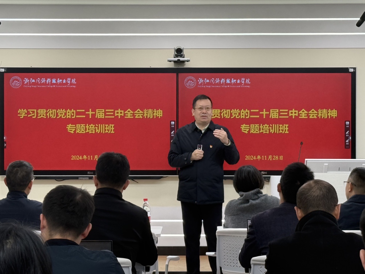 为深入学习贯彻党的二十届三中全会精神,学校于11月28日至30日举办学习贯彻党的二十届三中全会精神干部培训班。学校党委委员、组织部部长楼骏主持开班式,校领导和全体中层干部参加培训。