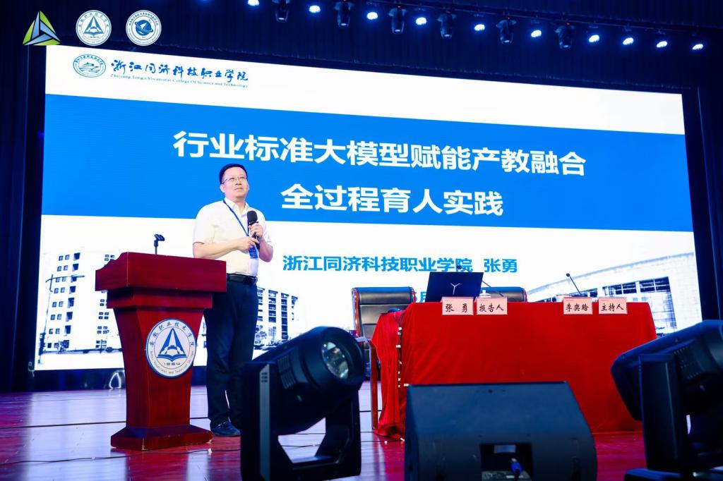 会上,张勇应邀作题为《行业标准大模型赋能产教融合全过程育人实践》的专题报告,立足国家职业教育数字化转型战略,系统阐述了学校在AI赋能职业教育领域的创新实践。报告指出,通过构建“产教协同、数智赋能”育人体系,依托行业标准大模型精准解析产业需求,实现了专业设置与产业需求的无缝对接、课程内容与技术发展的动态适配,打造了具有示范价值的育人新模式。
