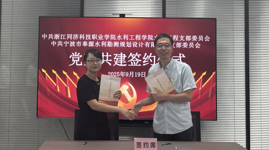 在双方领导的共同见证下,学校与宁波市奉源水利勘测规划设计有限公司签署了战略合作框架协议。同时,我校水利党支部、市政党支部分别与奉源水利勘测规划设计有限公司党支部签订了党建共建协议,标志着双方合作正式步入“党建引领、业务融合”的新阶段。