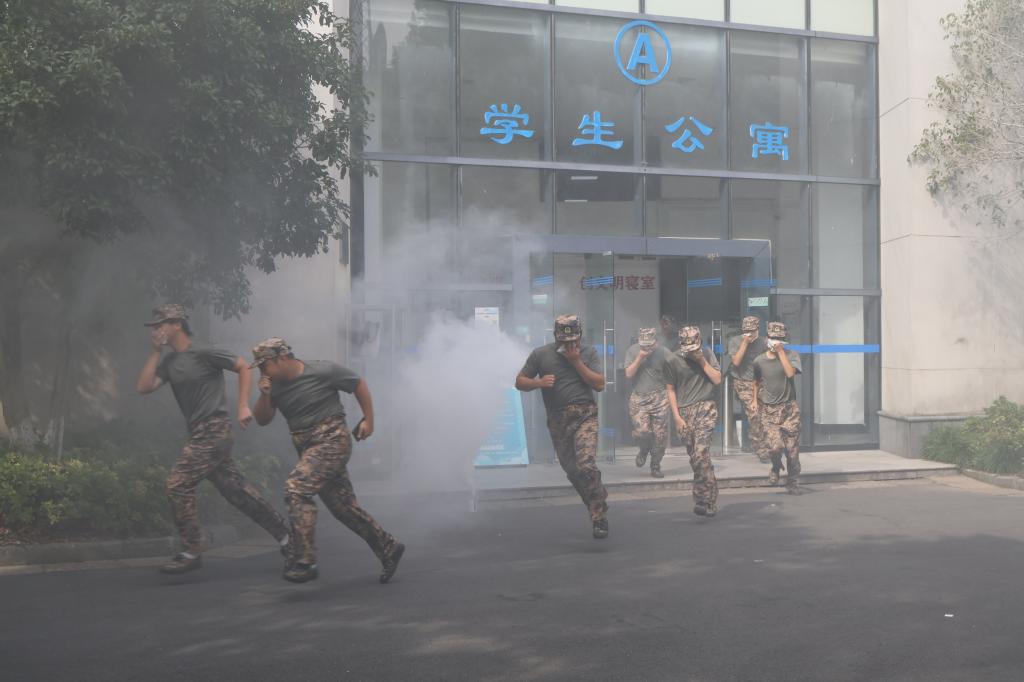 演练模拟学生公寓A楼突发“火情”。上午9时,警报响起,各应急小组迅速响应,参演学生在辅导员、教官与疏散引导员的指挥下,用湿毛巾捂住口鼻,弯腰低姿,沿预定路线快速、有序撤离至安全集结区。整个过程指令清晰、行动高效、配合紧密,全面检验了应急预案的科学性和操作性。