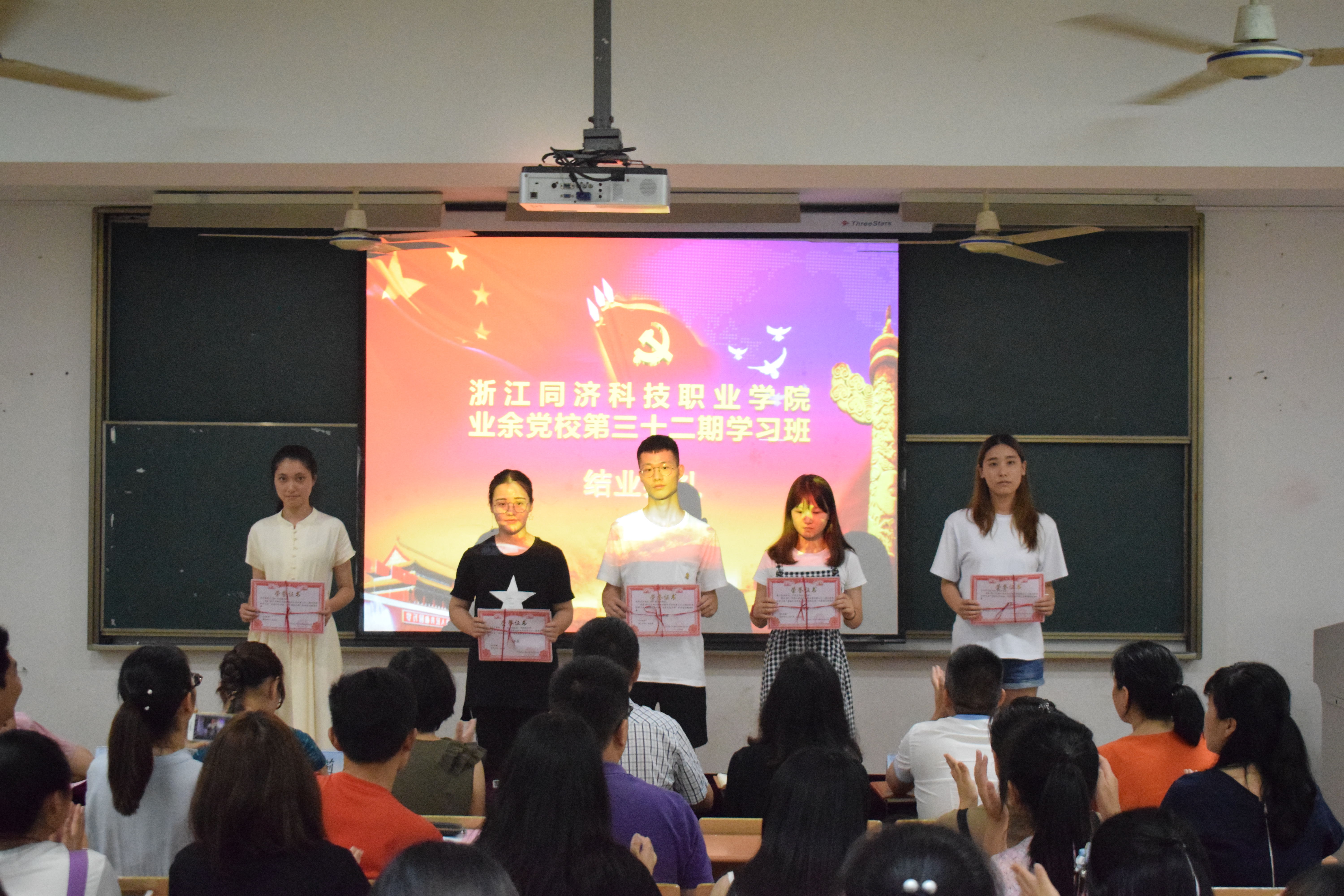 本期业余党校学习班历时近3个月,共有138名学员,其中131名学员取得结业证书。业余党校第32期学习班班主任商冬梅老师做本期业余党校的活动总结,并在“理论学习”、“阳光晨跑”、“社会实践”、“诗词朗诵”、“视频采访”等几个方面做了详细汇报。各系党总支书记为本系学员颁发结业证书。学工部副部长叶乐宣读了优秀学员表彰文件,吴宏平副院长、吴玲洪部长为优秀学员颁发了荣誉证书。