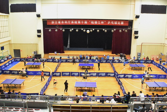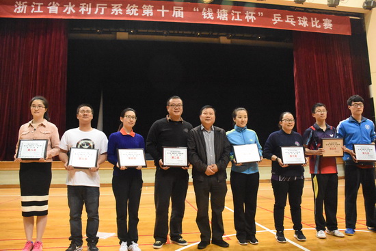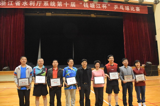 4月14日至15日,浙江省水利厅第十届“钱塘江杯”乒乓球比赛在我院文体中心举行,来自厅系统的12支参赛队伍、一百余名干部职工参加了本次乒乓球比赛。经过两天激烈的角逐,圆满完成各项赛程。我院、浙江省水利科技推广与发展中心分别获得职工男子团体、职工女子团体冠军,厅机关二队获得领导干部团体冠军。副厅长杨炯、学院党委书记丁坚钢、厅直属机关党委副书记董福平为获奖代表队颁奖。