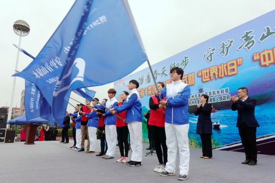 萧山区副区长方军宣布踏着春天脚步,守护青山绿水、校地共助全面剿灭劣V类水行动仪式暨2017年“世界水日”“中国水周”宣传活动正式启动。志愿者们开展了广场宣传、巡河以及护水宣誓等活动。在广场宣传活动中,志愿者们分发中国水利报,铺设学院“五水共治”成果展板,向行人宣讲水知识。另一批志愿者赴水炮湾河道进行了一系列的调研水质、清理周边垃圾等活动。最后两批志愿者在学院广场汇合,并进行宣誓。宣誓仪式中,志愿者们高喊将积极投身五水共治活动,共建美丽浙江!