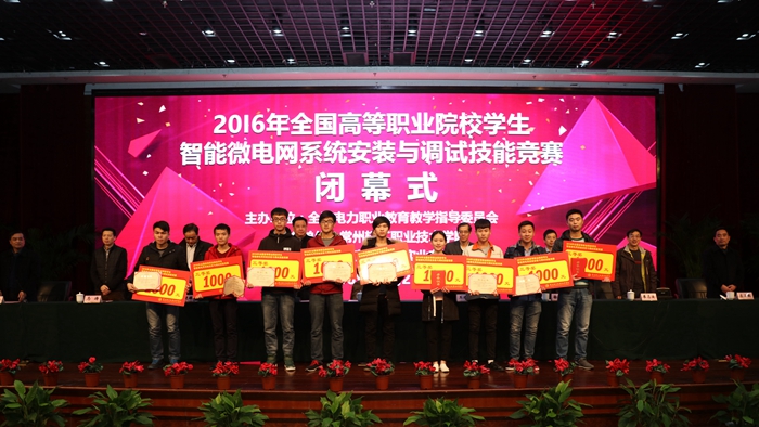 为了更加有效地推动职业院校新能源技术及电力专业的建设,为现代化能源工程储备大量技术、技能型人才,为广大学生的技能练兵提供更加广阔的舞台。第一届全国高等职业院校学生智能微电网系统安装与调试技能竞赛,于2016年11月25~27日在常州轻工职业技术学院隆重举行,来自全国15个省市的25所院校团队150名师生参加了比赛。我院机械与电气工程系成立了由王伟、黄莉为指导带队老师,李雄武、占美亮、孙露舰三位学生组成的参赛团队,经过前期的精心准备,刻苦训练,大家信心满满的参加了比赛。