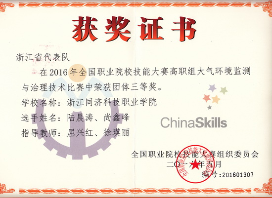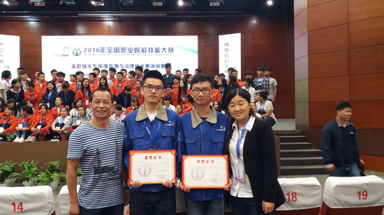 由我院水利系教师屈兴红和徐瑛丽指导的水工14-02班学生陆晨涛和设施14-01班学生尚鑫峰组成的参赛队,作为浙江省的三个参赛代表队之一参加了本届国赛“大气环境监测与治理技术”项目的比赛,经过激烈的角逐,最终荣获团体三等奖的好成绩。这是我院学子首次在全国职业院校技能大赛中获得奖项。