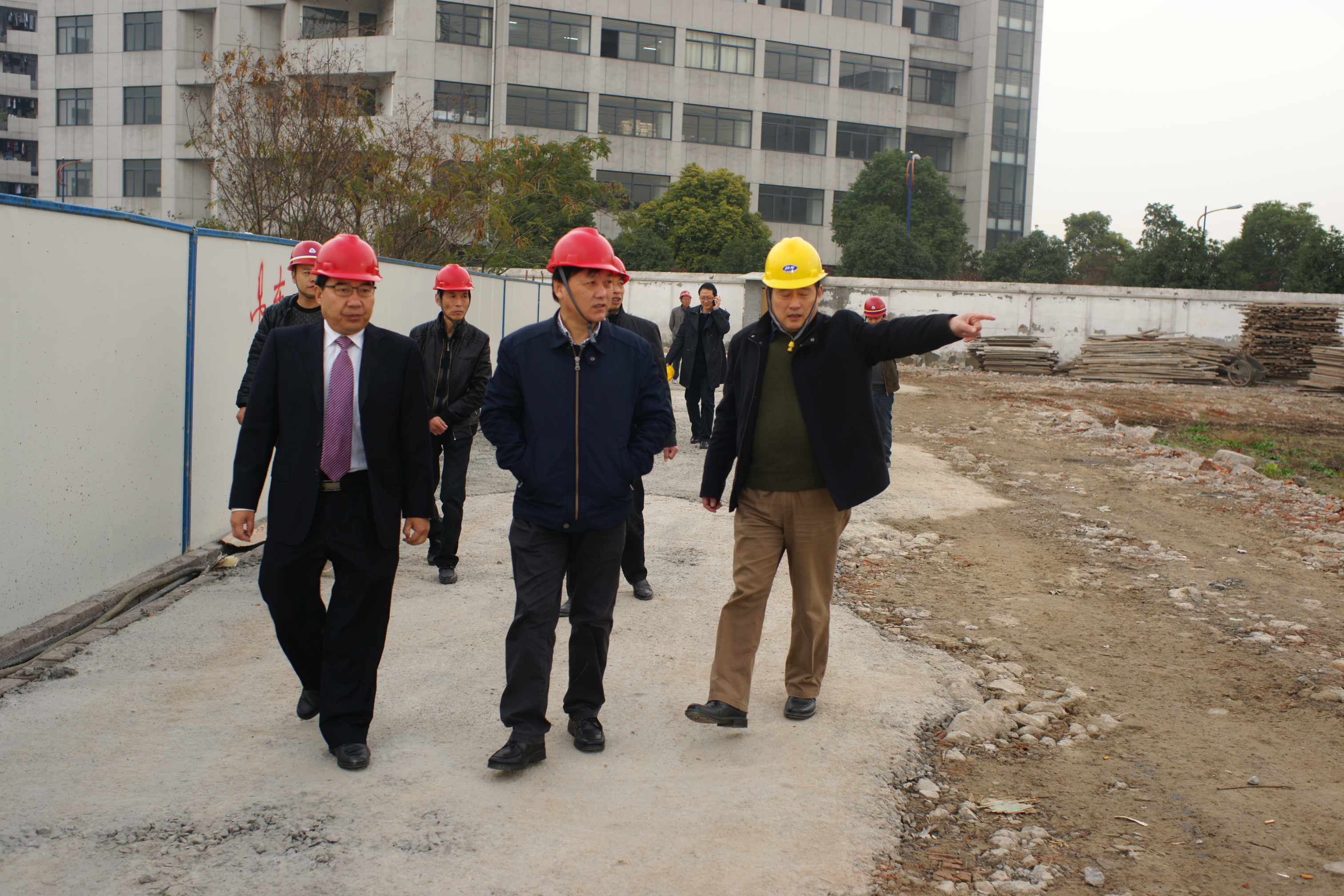 11月27日,省水利厅厅长陈川、办公室主任吕峰在学院院长梁国钱、副院长刘志华、总务基建处处长蒋国城的陪同下,视察了学院二期扩建工程工地。