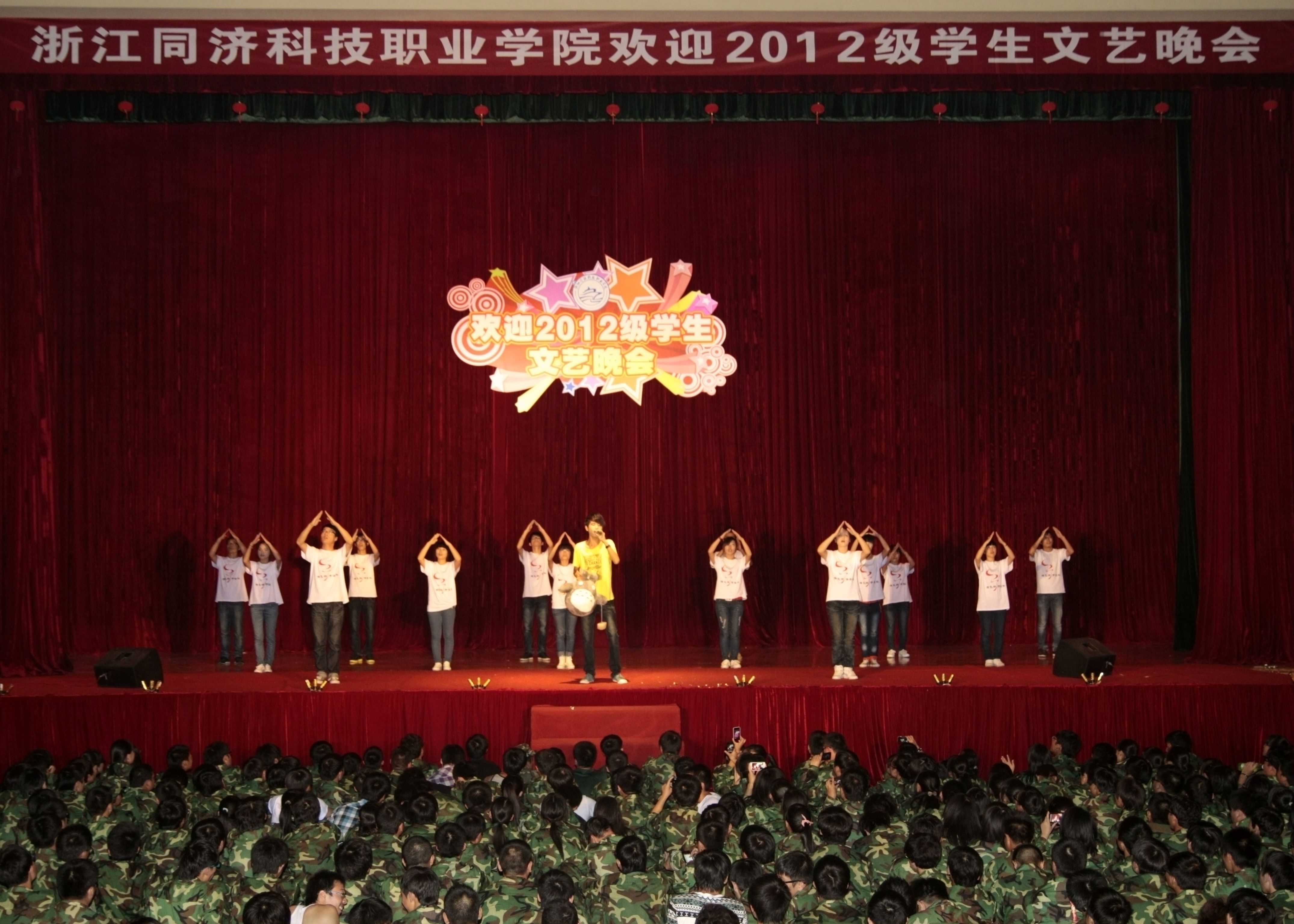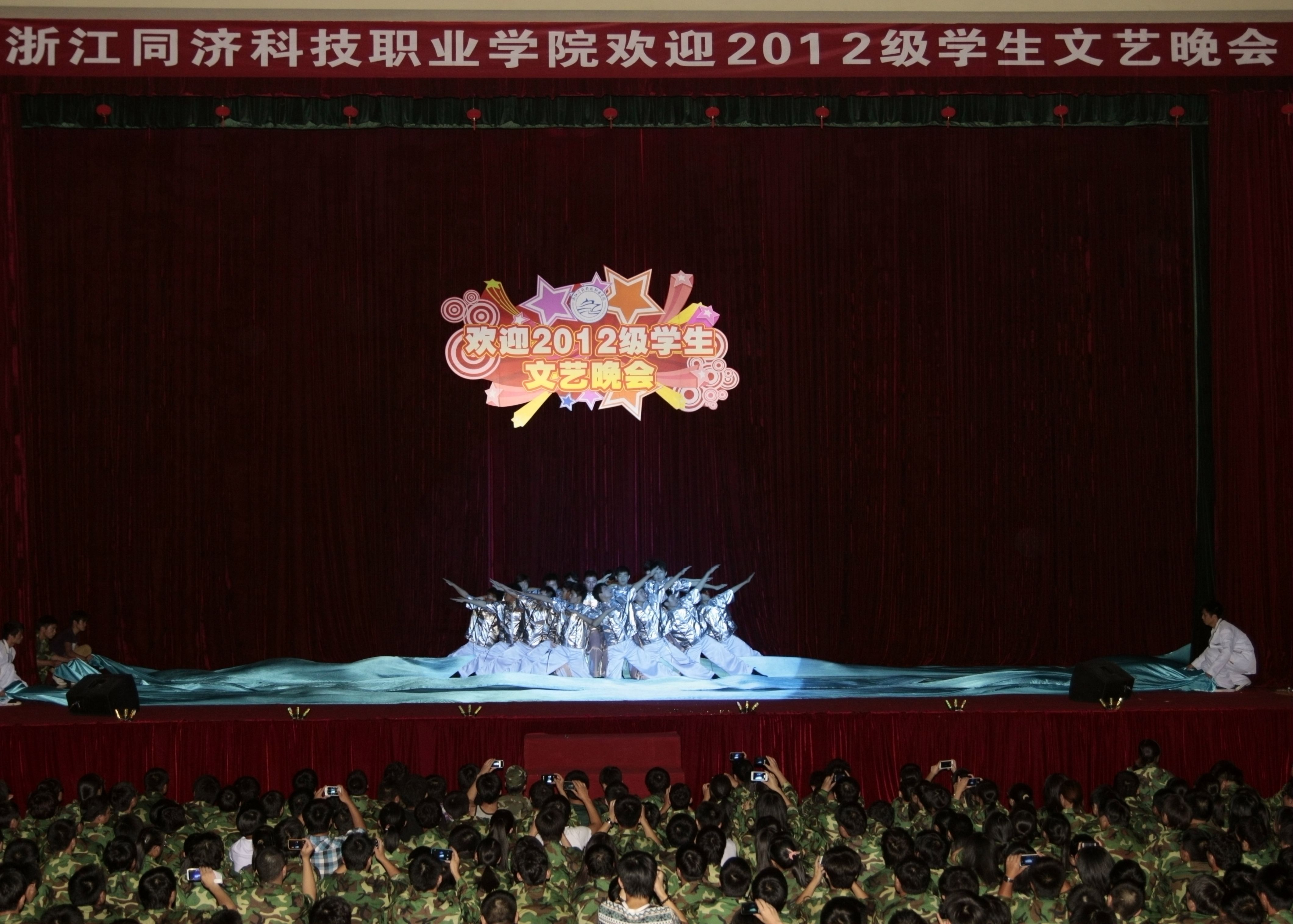 9月25日晚,由我院团委主办,各系团总支、院学生会及学生社团联合会共同承办的欢迎2012级学生文艺晚会在文体中心篮球馆精彩上演。2000余名新老生与军训教官、各系团总支书记、新生班主任一同观看了演出。