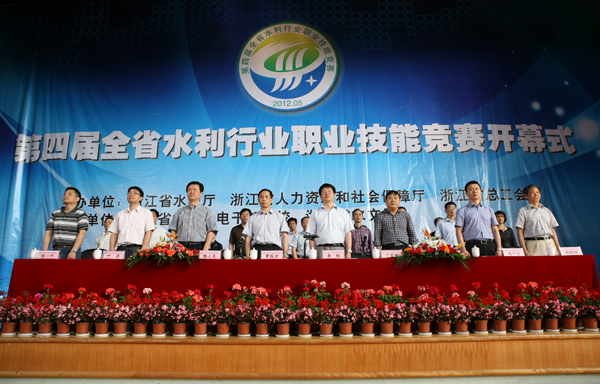 开幕式由水利厅总工程师李锐主持,省水利厅副厅长章国方出席开幕式致词并宣布竞赛开幕,学院党委书记丁坚钢致欢迎词,省人力社保厅职业能力建设处处长陈小克讲话,厅人事教育处葛平安处长宣布竞赛纪律,省职业技能鉴定中心、省总工会计协办、水利厅有关部门负责人,以及来自全省各地的参赛代表队出席开幕式。
