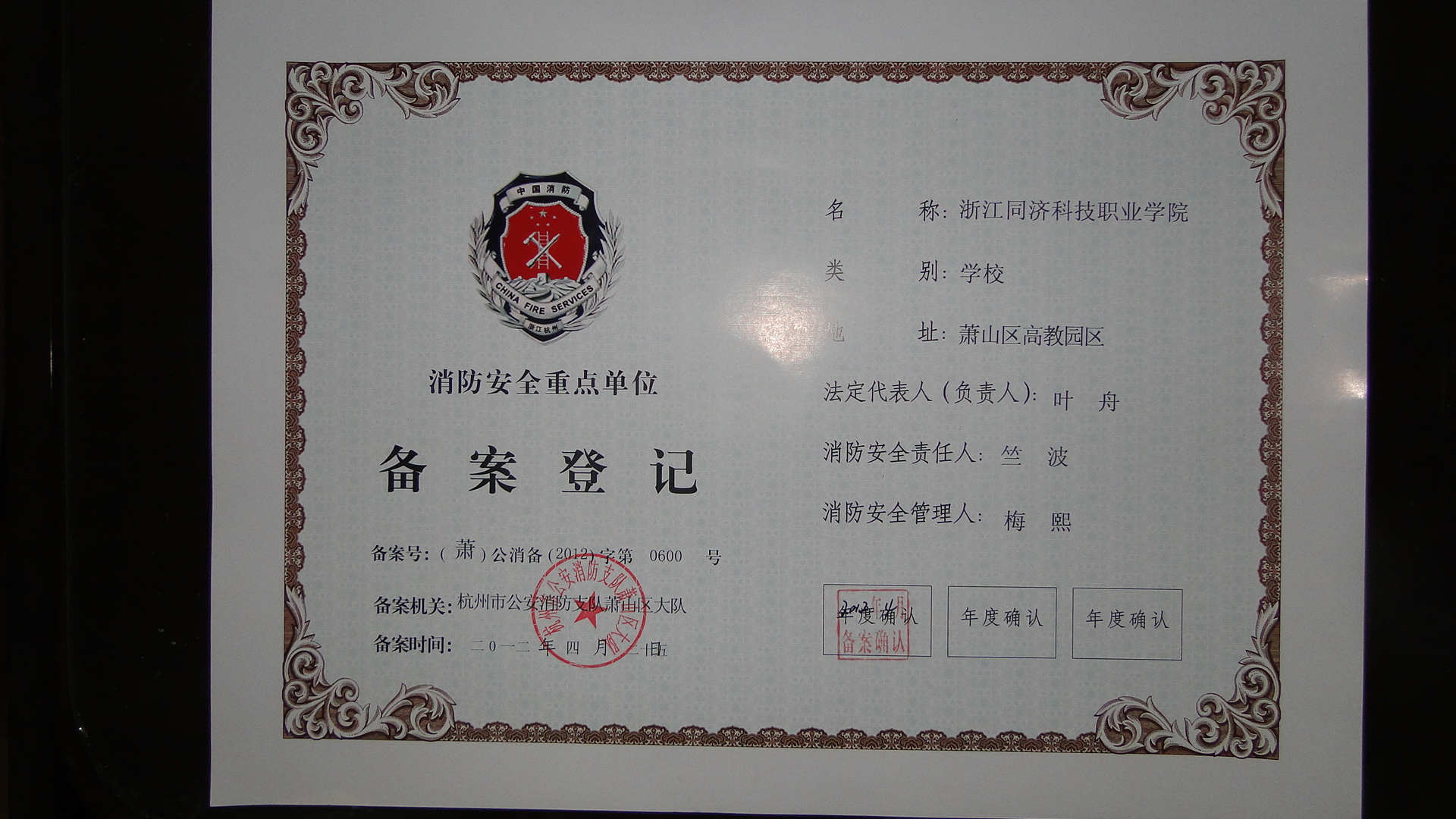 为进一步巩固“平安校园”成果,深入开展“责任、制度、教育、人防、技防”五大体系建设工作,强化消防安全“四个能力”建设,在学院领导的高度重视和关怀下,经过保卫处全体同志近二个多月的努力,继三月份我院消防控制室获得注册证后,四月份学院又获得消防安全重点单位备案登记。这也意味着我院的消防安全规范管理又迈上了一个台阶。