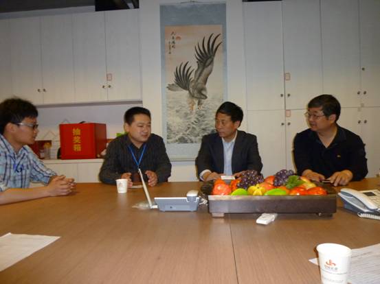 金副校长首先来到位于萧山的杭州新高策投资管理有限公司,看望在那里顶岗实习的装饰艺术设计08-01班学生李波。当得知李波同学经过4个多月的奋力拼搏,现已成为该公司的区域主管、被评为周销售之星时,金副校长非常高兴,勉励李波同学继续加油,做出更加优异的业绩,为学院争光,为艺术系争光。