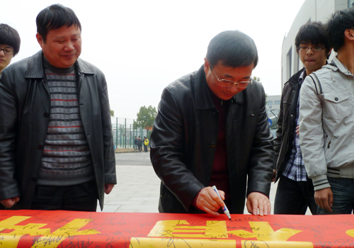 活动当天,同学们纷纷来到校门口,在横幅上郑重的签下了自己的名字,每个人心中撒下了学习伟人精神的种子。学院党委书记丁坚钢也在横幅上庄重签下了自己的名字,并对活动班级的学生进行了鼓励。在短短一个小时的时间内,累计签名达400多个。完满达到了宣传活动的预期效果。