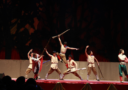 这次带来的由金永玲本人精心编排的红色歌剧《洪湖赤卫队》在原版的基础上进行了浓缩改编,并借助现代化的舞台烘托出激烈战斗场面,让观众重温那段血雨腥风的岁月。话剧背景共有四个部分:彭家墩大堤、彭家后花园、赤卫队驻地和临时牢房。演员们优美婉转的歌喉、婀娜多姿的舞蹈不时引来场下观众的阵阵掌声。背景音乐与舞台灯光的完美配合更是让观众们身临其境。