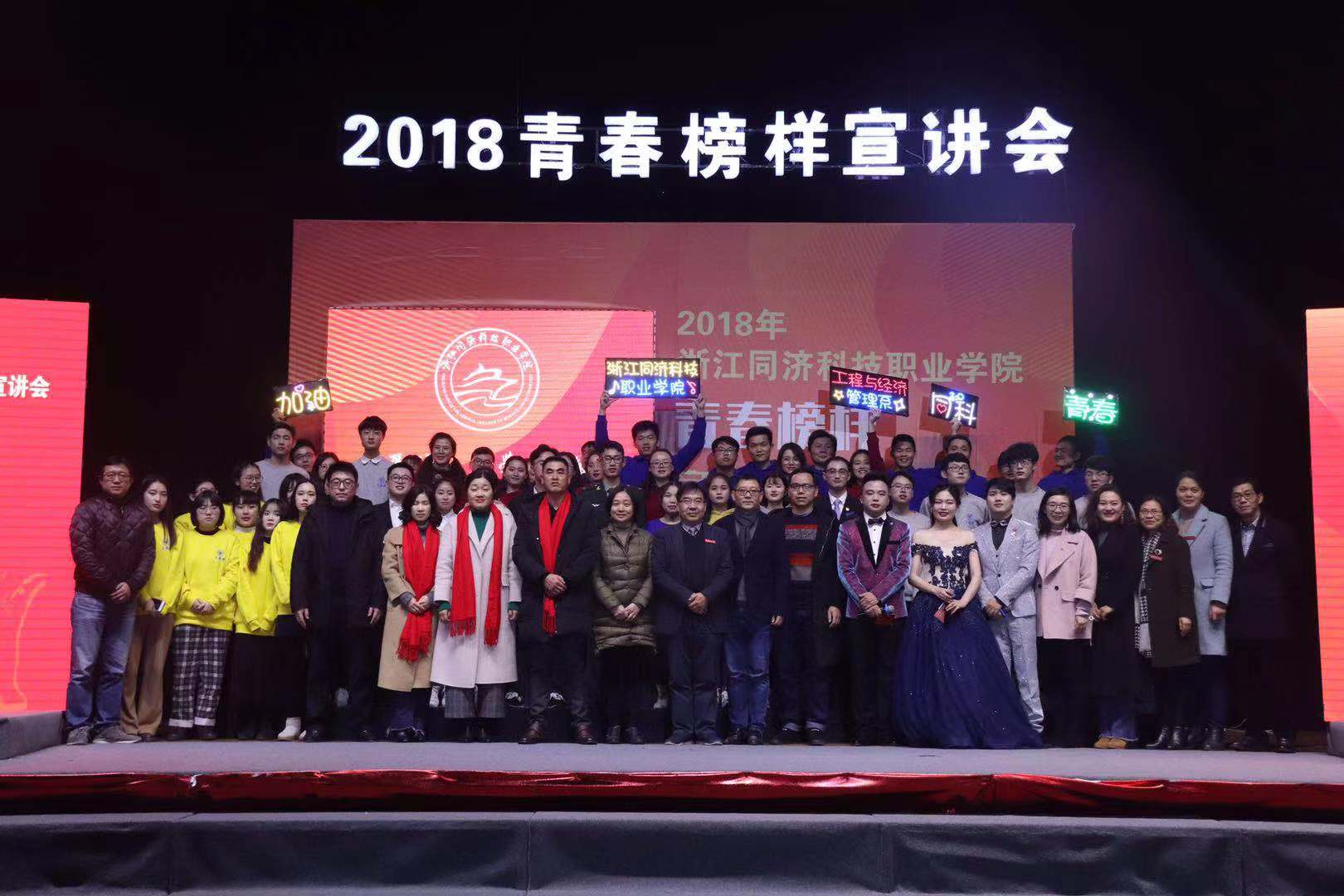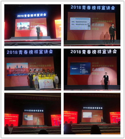 学院2018年“青春榜样”宣讲会于2018年12月25日在文体中心篮球馆隆重举行。学院院长梁国钱,党委副书记、副院长吴宏平,党委委员、组宣部部长吴玲洪,学生处、教务处、团委、基础部等部门负责人和各系党总支书记出席宣讲会。学生处还特别邀请了宣讲人家长、团队指导教师、班级德育导师与1200余名学生共同聆听奋斗者的声音,感受榜样的力量。
