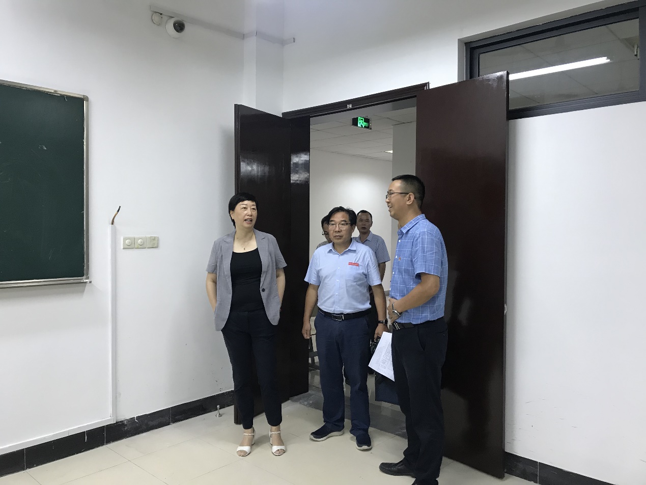 8月29日上午,学院党委书记江影、院长梁国钱、副院长姜伟在院办、总务基建处、后勤服务中心等职能部门负责人陪同下,实地检查暑期各基建维修改造工程项目完成情况。