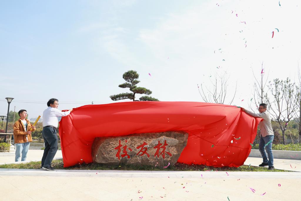 梁国钱院长与校友代表周奇共同为校友林揭牌