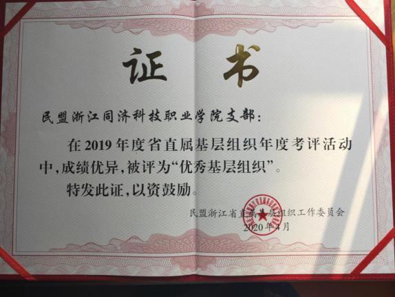 本次考评依据基层组织贯彻落实省委会工作(15分)、自身建设(40分)、履职尽责(45分)和附加分等方面进行。民盟同科支部2019年,在组织学习、开展活动、建言献策、本职工作、社会服务等方面完成得比较优秀。指导学生参加省级一类赛事,获1个一等奖、3个二等奖、1个三等奖等。支部盟员有被各级政府机关聘请全国水利职业院校水利工程项目竞赛规程制定专家、水利厅三百一争服务专家、农村水电站安全生产标准化评审专家等,有被学院聘请为特约监督员、教职工兴趣班培训老师、教学委员会、学术委员会、工会经审委成员、资产公司监事等;开展了纪念民盟成立、纪念“五一口号”发布、庆祝中国共产党建党等活动;参观五四宪法历史资料陈列馆、杭州党史馆等地,领会宪法精神、学习杭州党史;到安吉余村,参观学习习近平总书记“绿水青山就是金山银山”理论;到安徽徽州陶行知纪念馆、岩寺新四军军部等地方,参观学习陶行知人民教育家理论、新四军精神;还参加了民盟建设学院支部委员选举、民盟体育学院支部成立与委员选举会议。值得一提的是,盟员之家在学院党委和统战部的支持下于2019年10月22日成立,它是学院统战工作的一个里程碑,也是民盟同科支部值得庆贺的一件大事。盟员之家要成为盟员统一思想、提高认识、情感联谊、共同进步的重要平台。