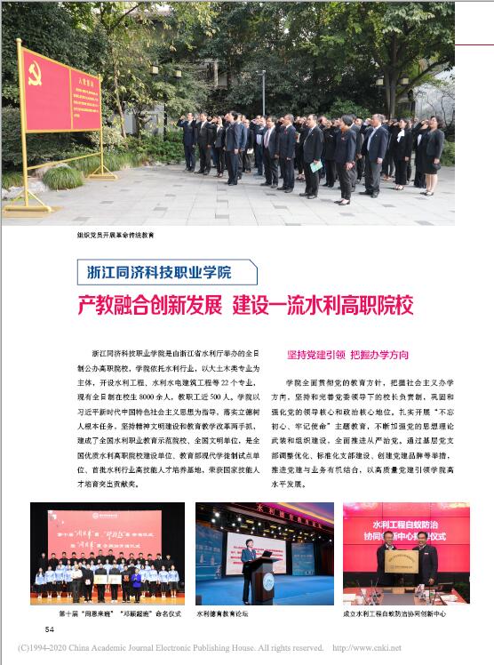 《中国水利》杂志是水利部主管的水利行业权威刊物,是中国水利事业的“智库”,曾列入北京大学《中文核心期刊要目总览》来源期刊,获得第二届全国优秀科技期刊一等奖。杂志在创刊70周年之际,发表我院的成果报道,这既是对我院作为水利院校60多年来培育大批优秀水利人才工作的肯定,也是在习近平总书记关于治水工作重要论述的指引下,对学院建设一流水利高职院校的激励,在水利系统中进一步树立了学院模范典型的形象。