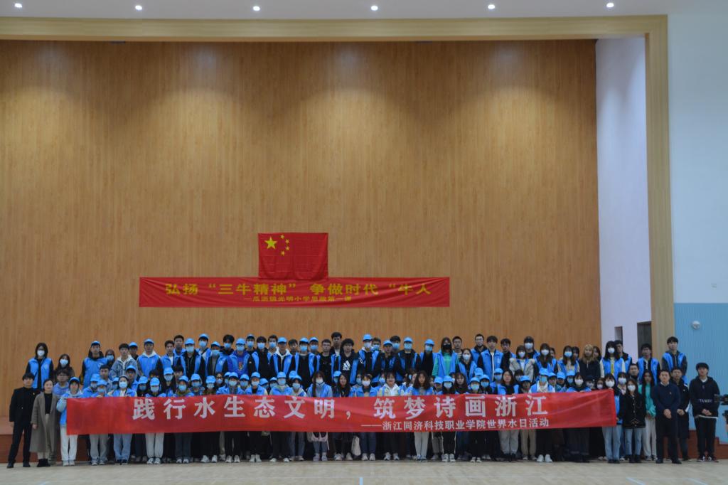 3月19日,歌曲《我是一滴水》在萧山区瓜沥镇光明小学不断接力传唱,在刚刚结束的“大手拉小手·节水光明行”世界水日活动中,来自艺设学院的130多名志愿者和光明小学近千名学生共唱一首歌,共护一滴水。在此次活动中,不仅有PPT节水知识宣讲、节水主题画展、还赠送了志愿者们精心制作的“小禹”水滴书签,受到了1096名小朋友的喜爱。